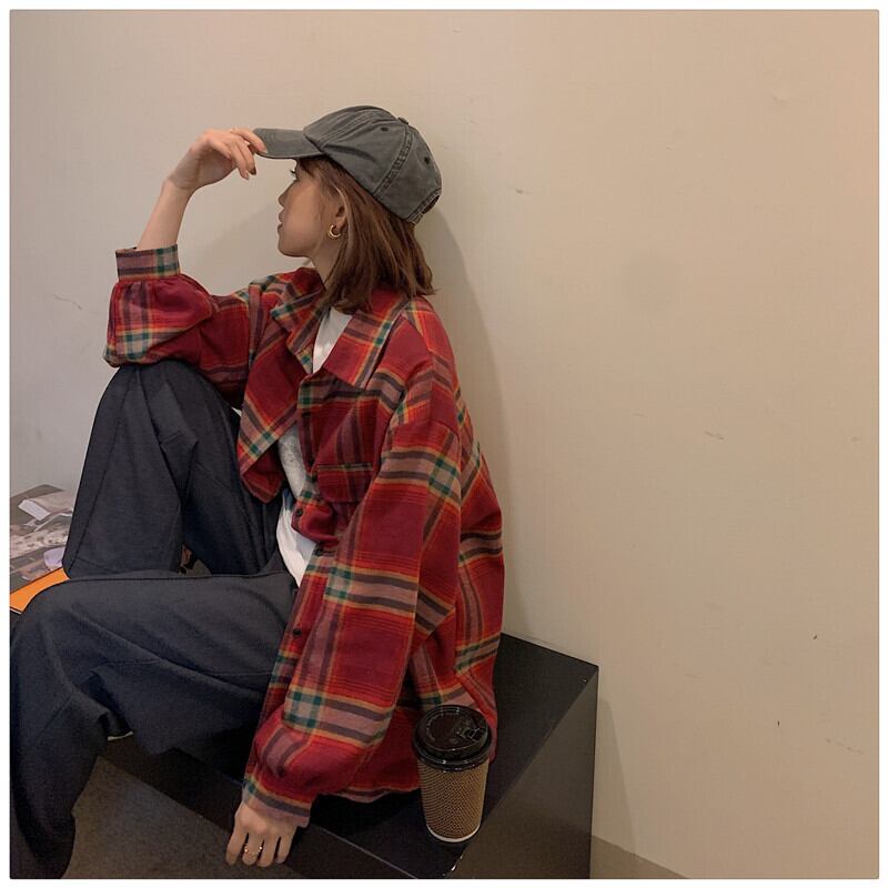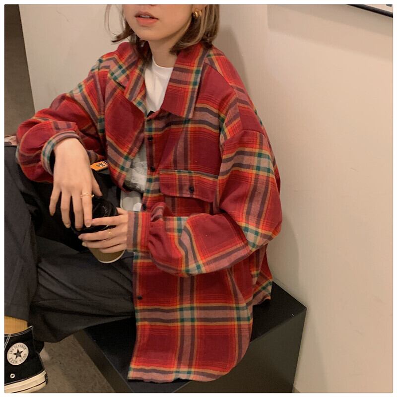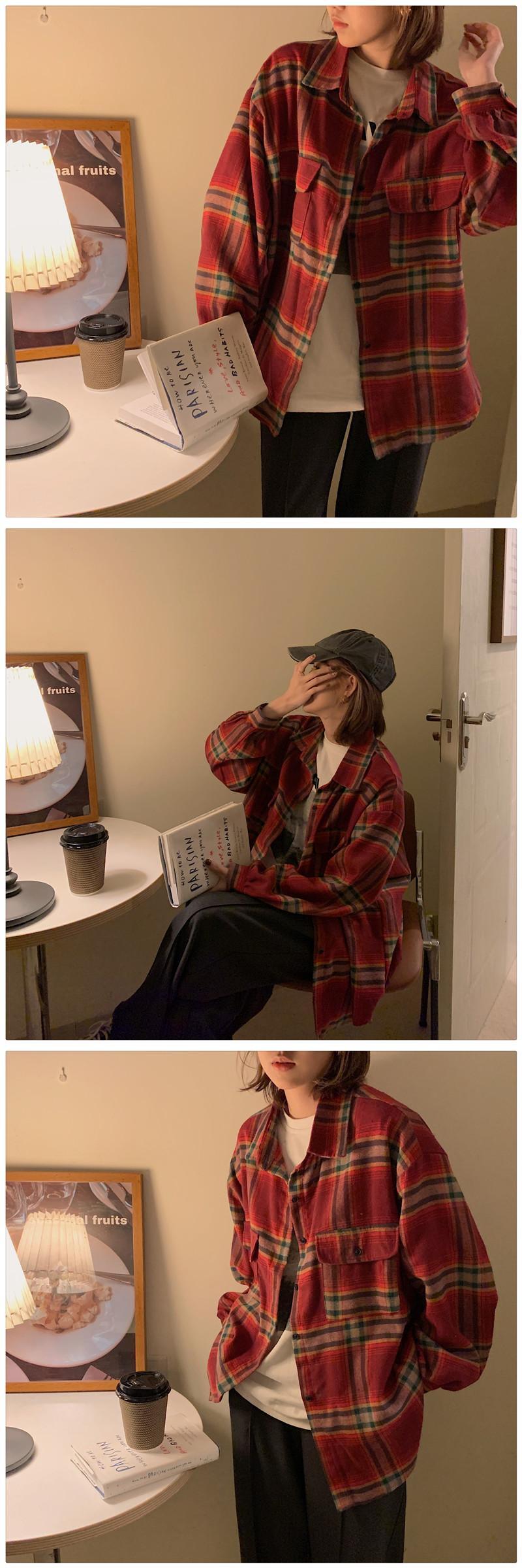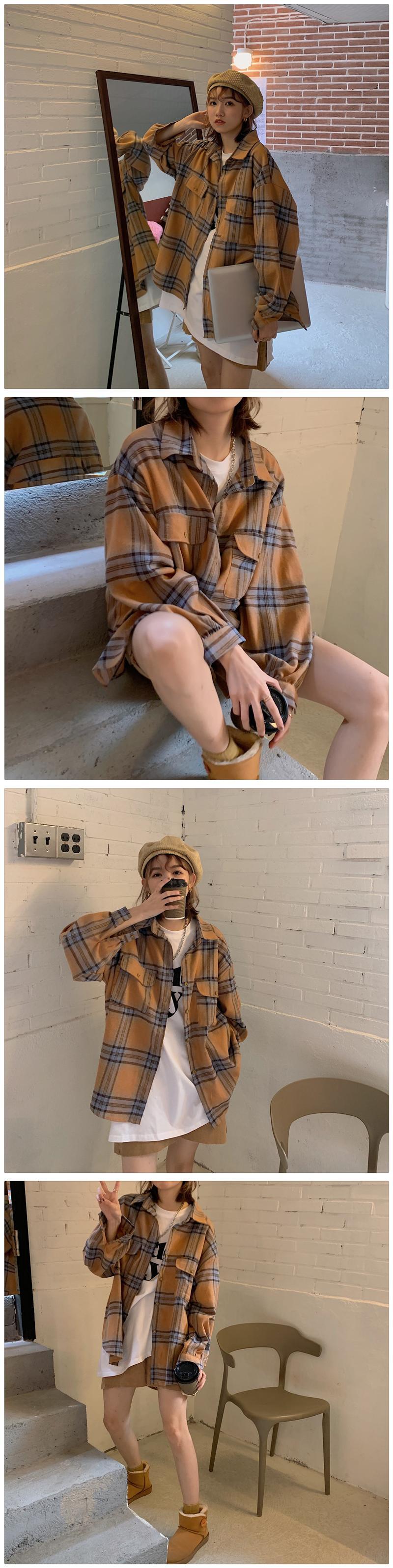 スタンダードスタイル格子柄シャツ スプリングジャケット ロング レトロ 春物 モンロー68148280918