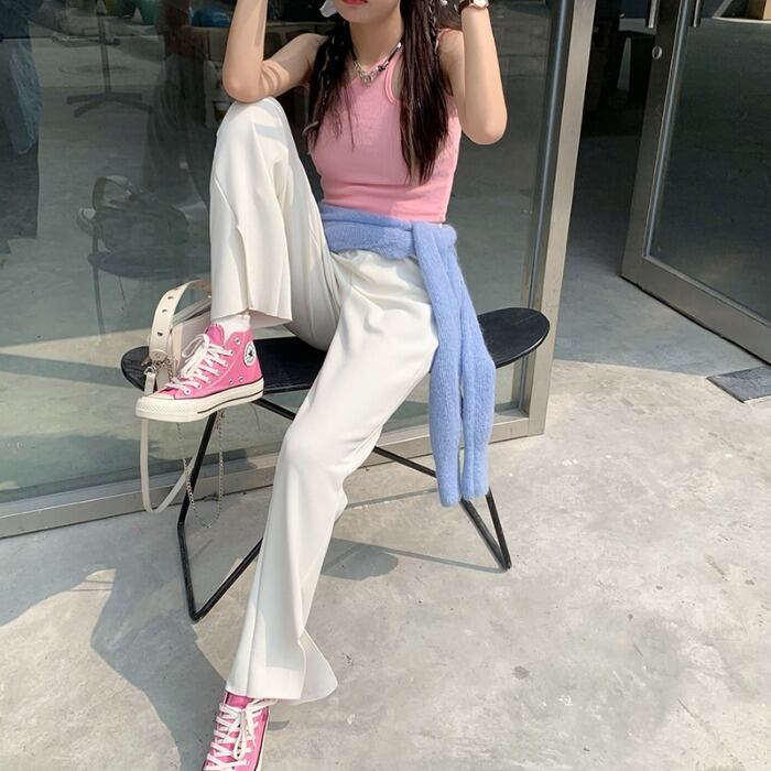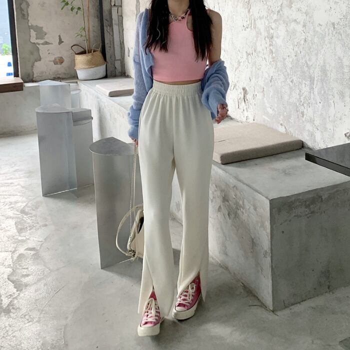 ワイドレッグパンツ ハイウェストウェストカジュアルサマールーズ薄手 夏物 ワイドパンツ モンロー24953719948