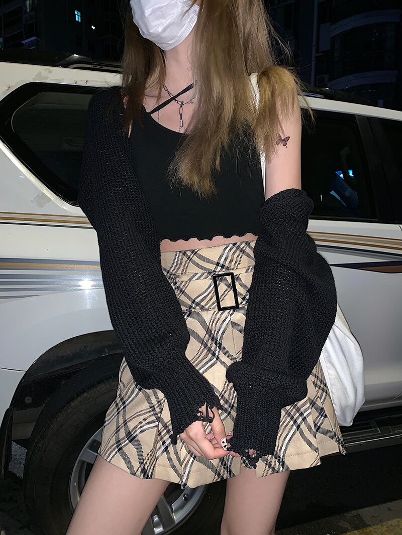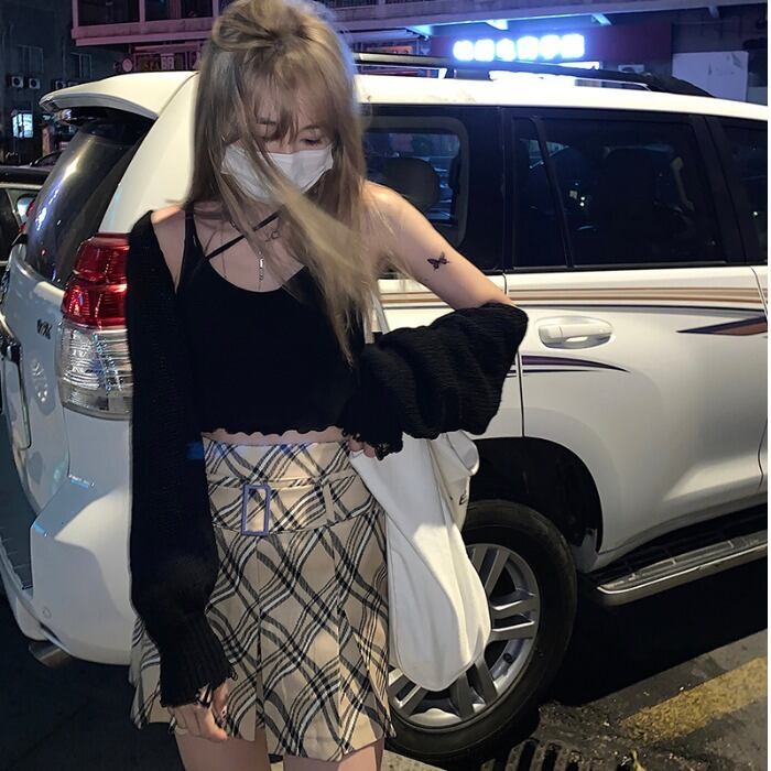 格子柄スカート Aライン薄手ショートサマープリーツハイウェストウェスト 夏物 モンロー43533798616