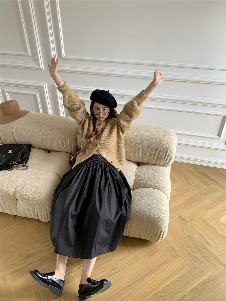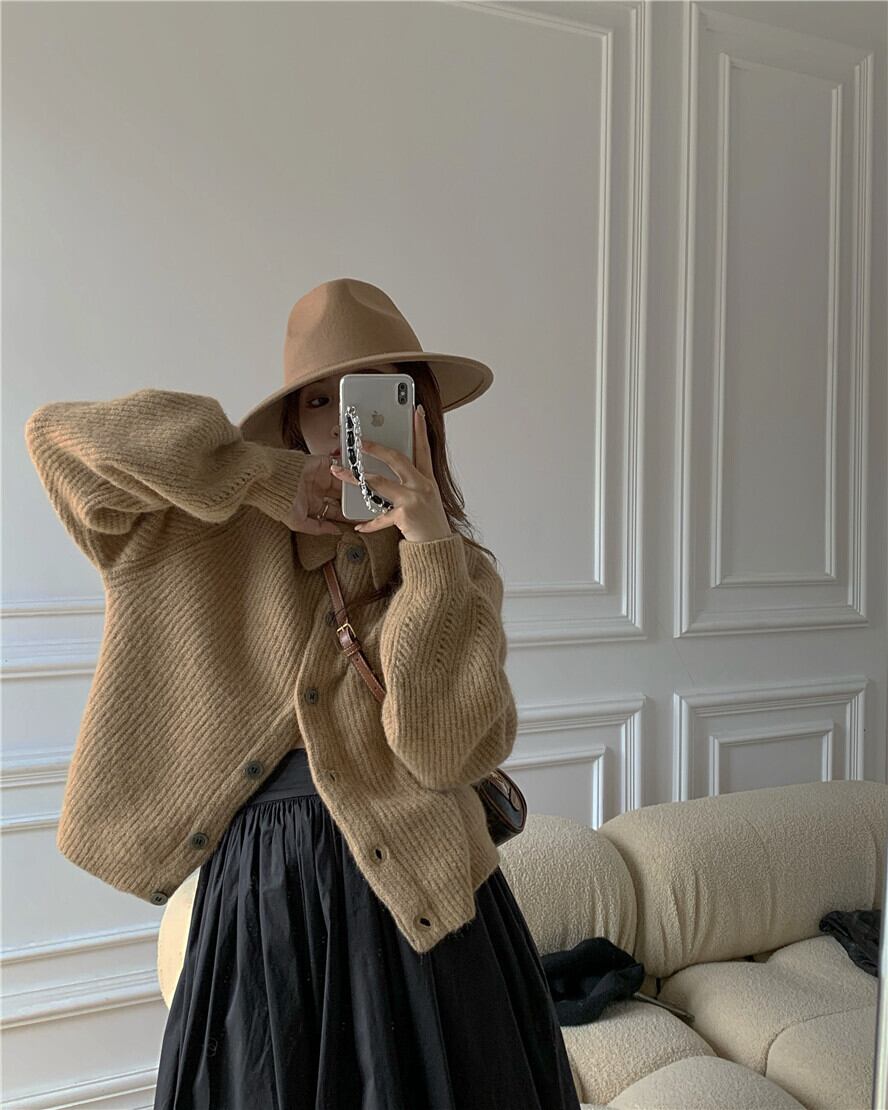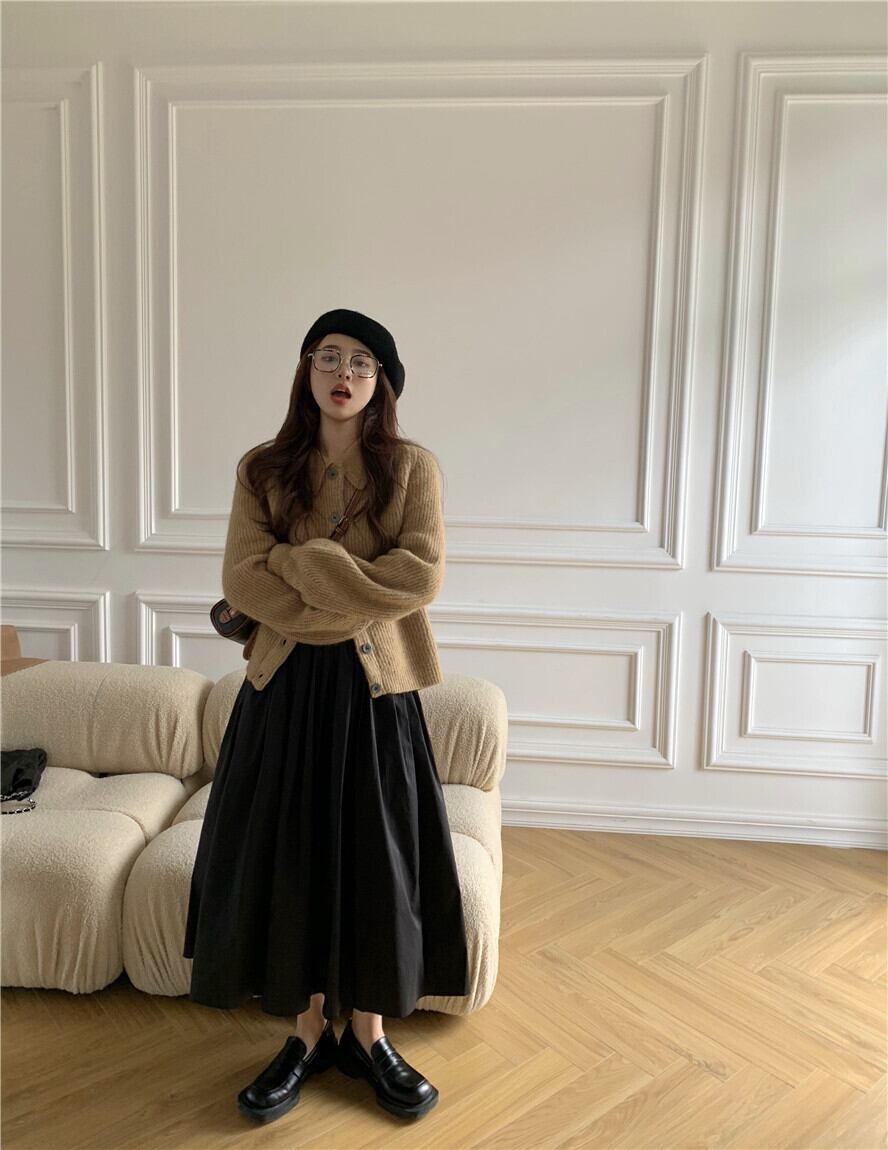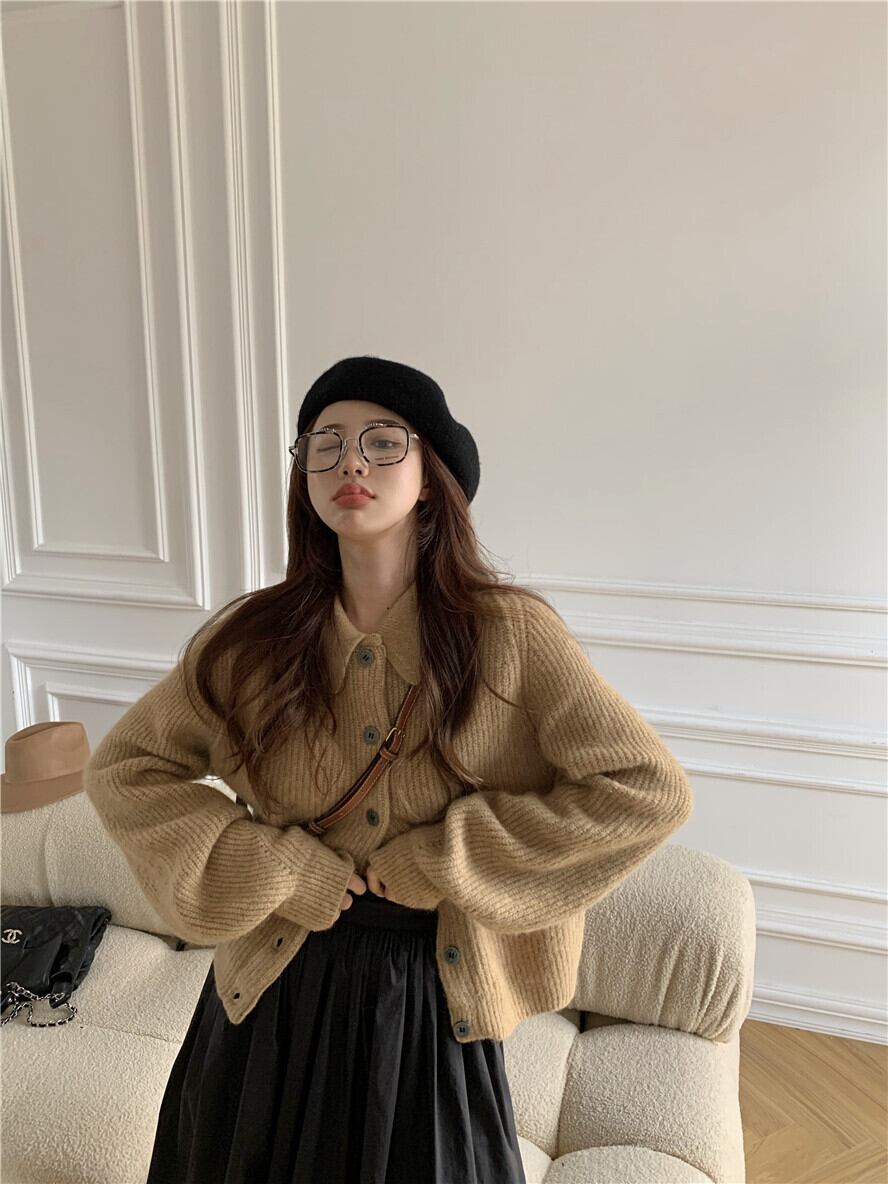 ルーズニットセーター レディースオータムウィンタークロップドトップス コート スタンダードカーディガン レトロ 秋物 冬物 モンロー27307176292
