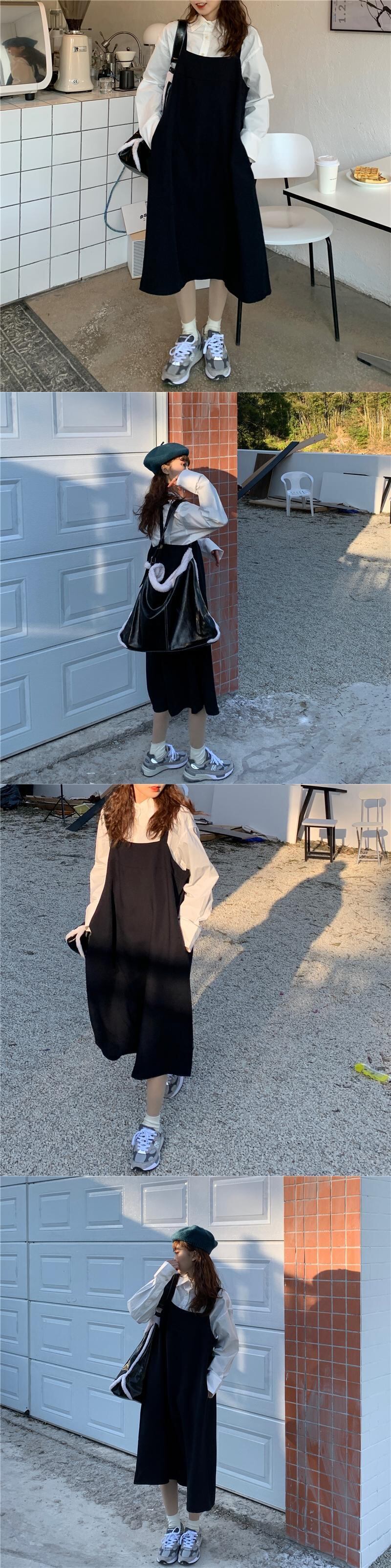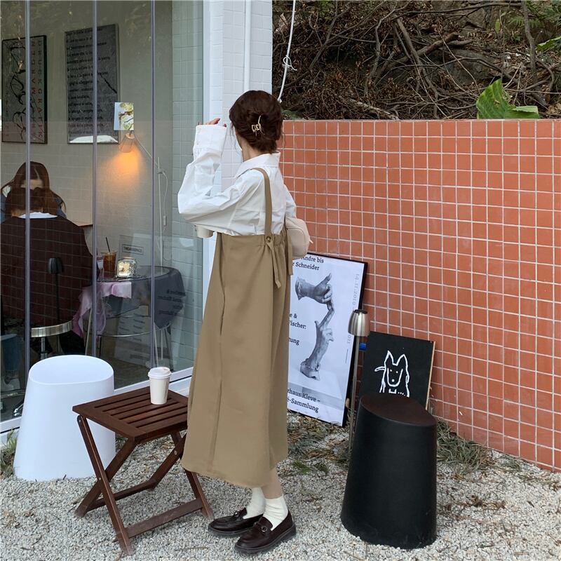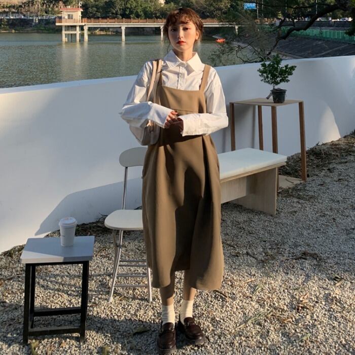 色:BFビッグシャツ,ライトカードサスペンダースカート,ネイビーブルーのサスペンダースカート