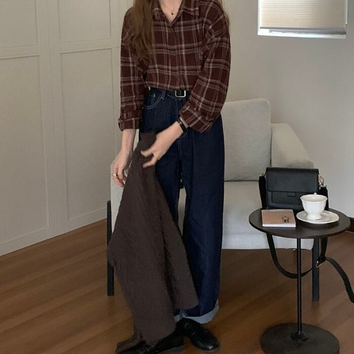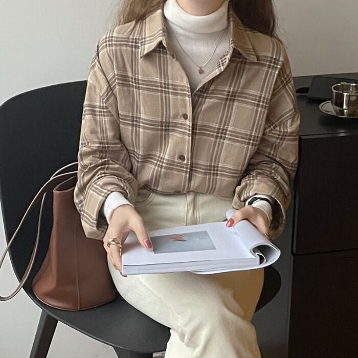 オータムウィンターシャツ ジャケット レディーストップス スタンダードスタイル ロング レトロ 秋物 冬物 モンロー74990942007