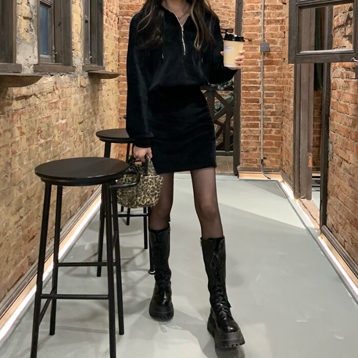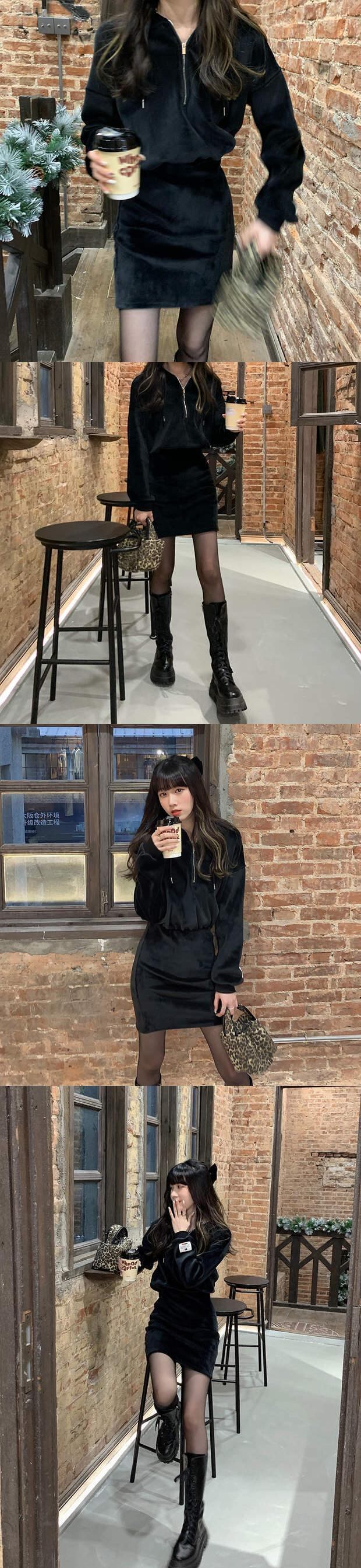 フードセーター ベルベットドレス オータムウィンタースカート ショート 秋物 冬物 モンロー37640299590