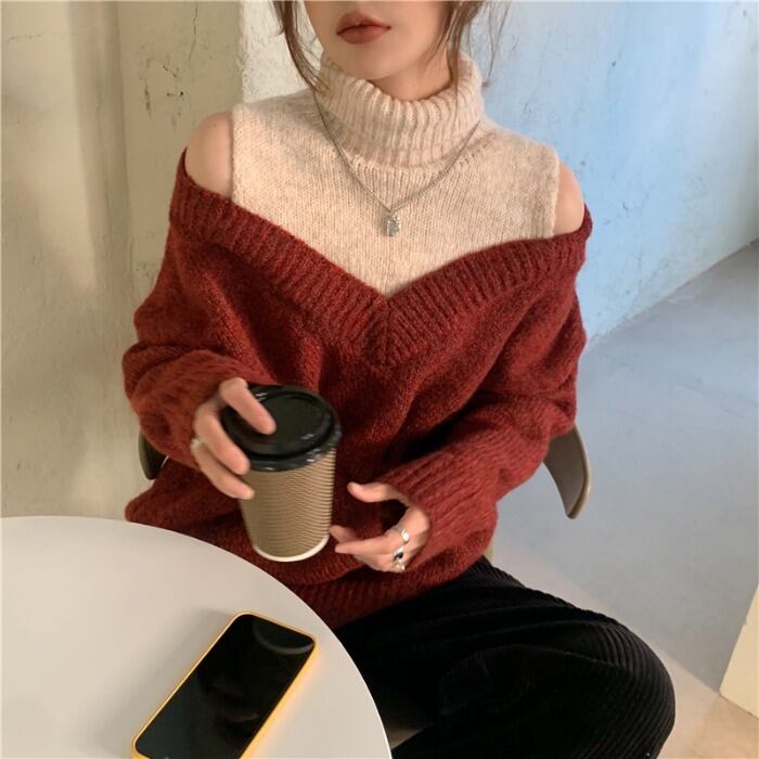レッドセーター レディースオータムウィンタートップス 秋物 冬物 オフショルダー モンロー56515803547