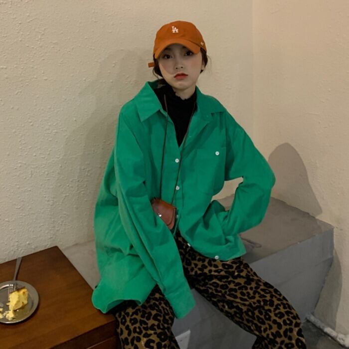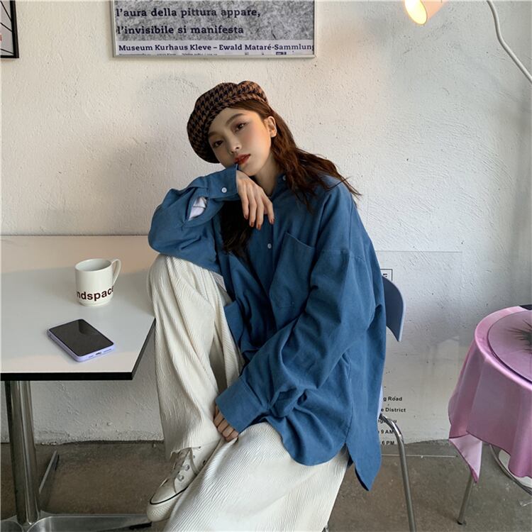コーデュロイシャツ レディーススタンダードスプリングトップス コート ロング レトロ 春物 モンロー77768908782