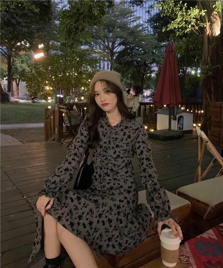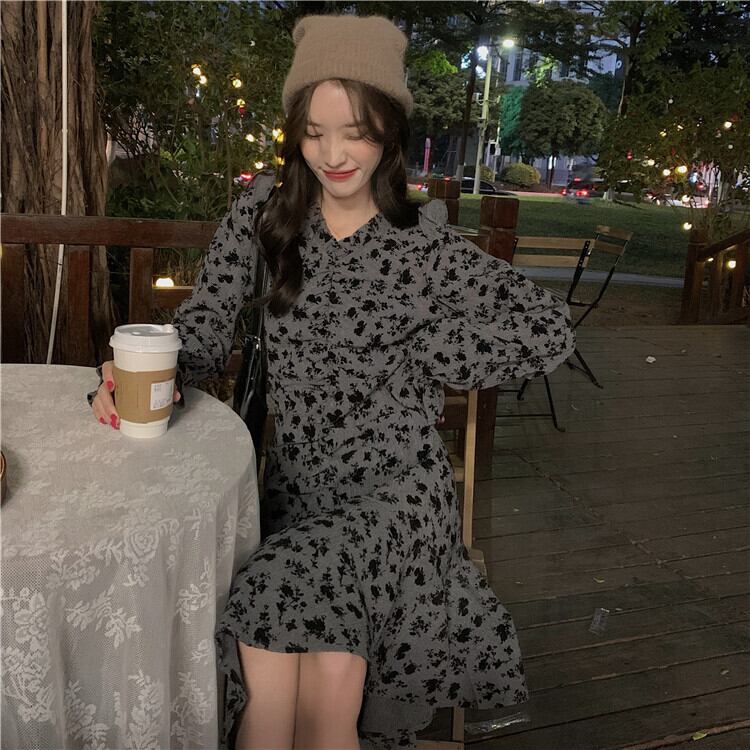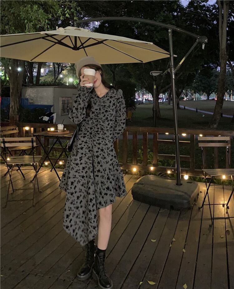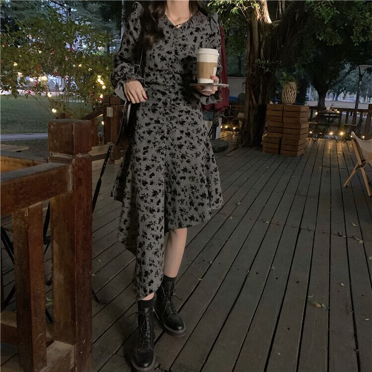 フローラルドレス オータムウィンタースカート ウェスト薄手ロング 秋物 冬物 花柄 モンロー89496542654