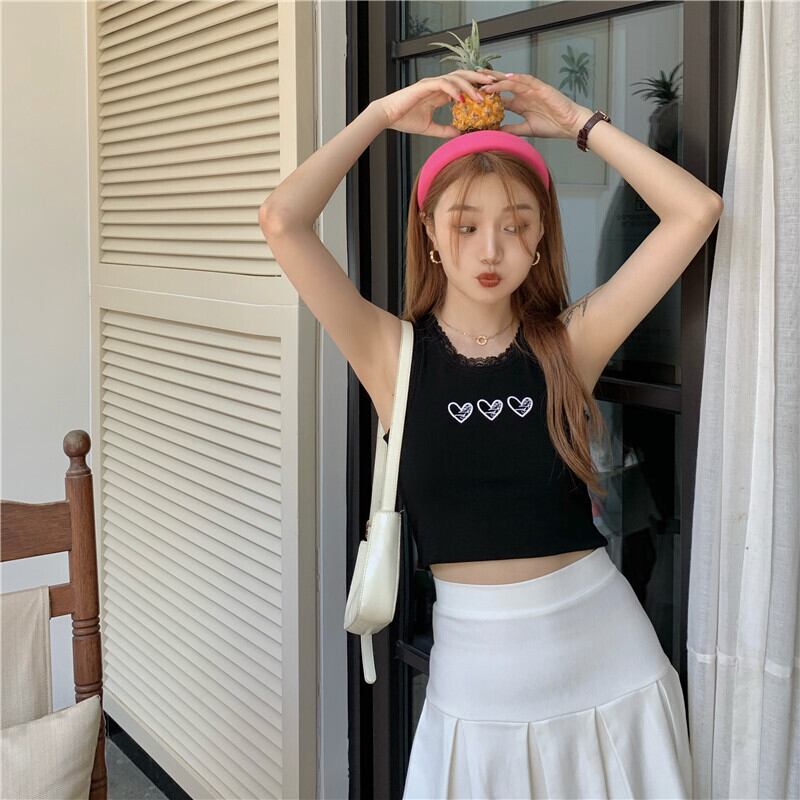 ホワイトレディースショートサマーレースノースリーブトップス 夏物 モンロー17724390791