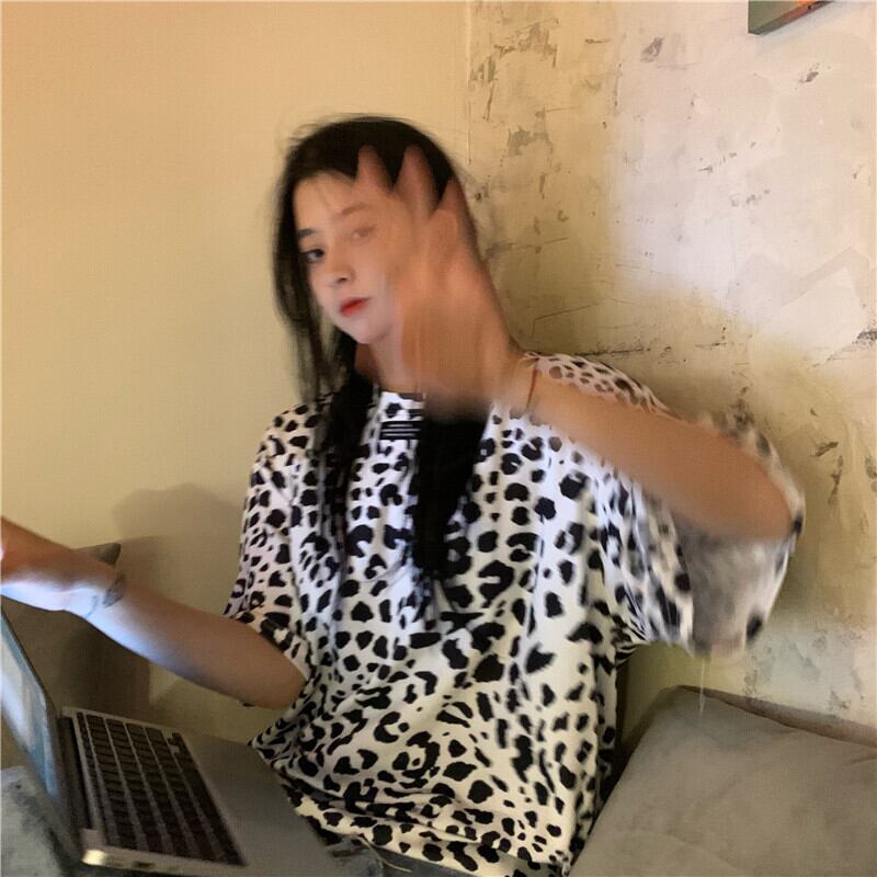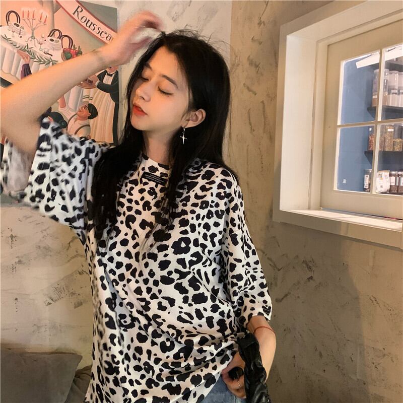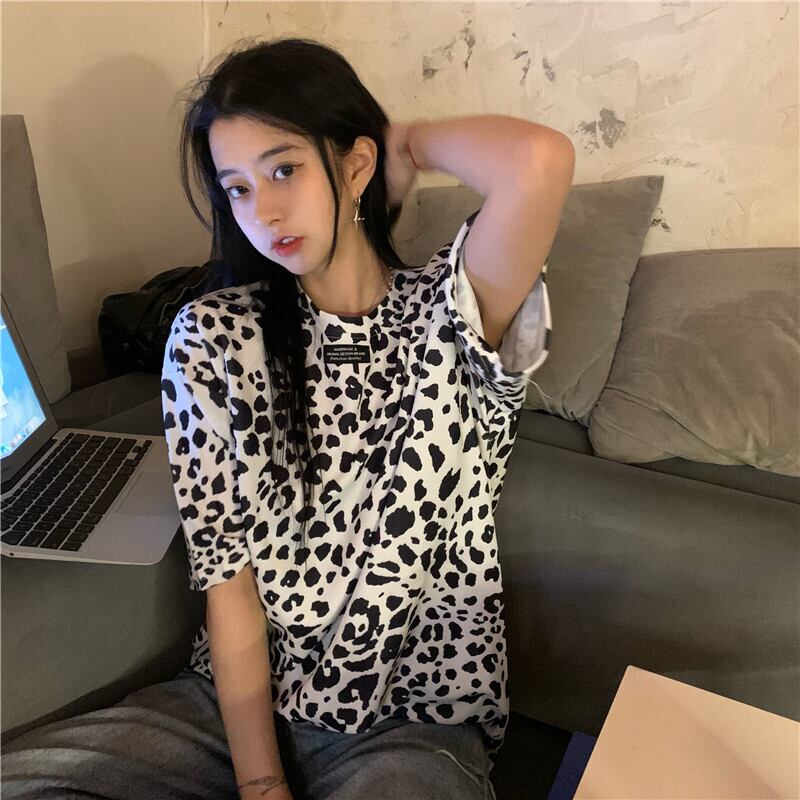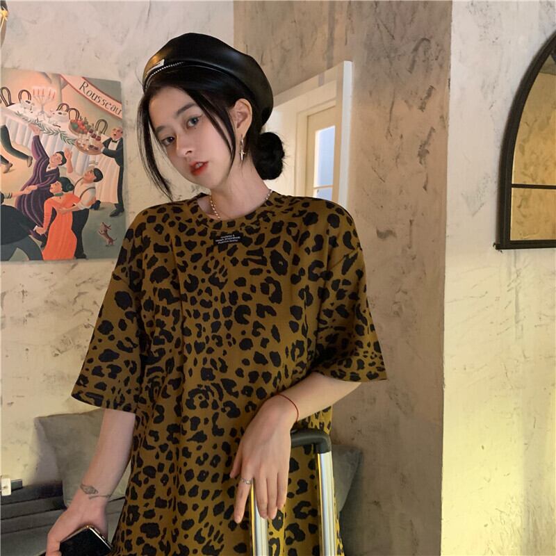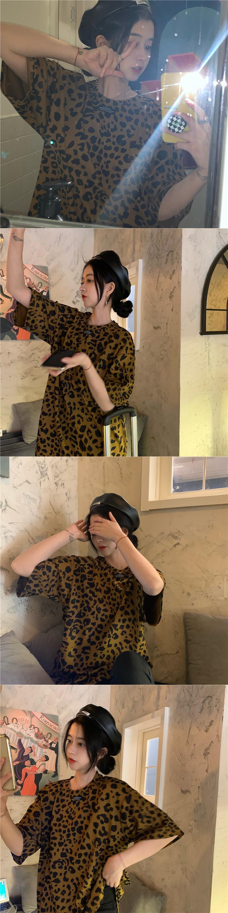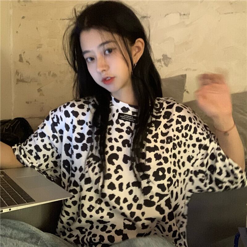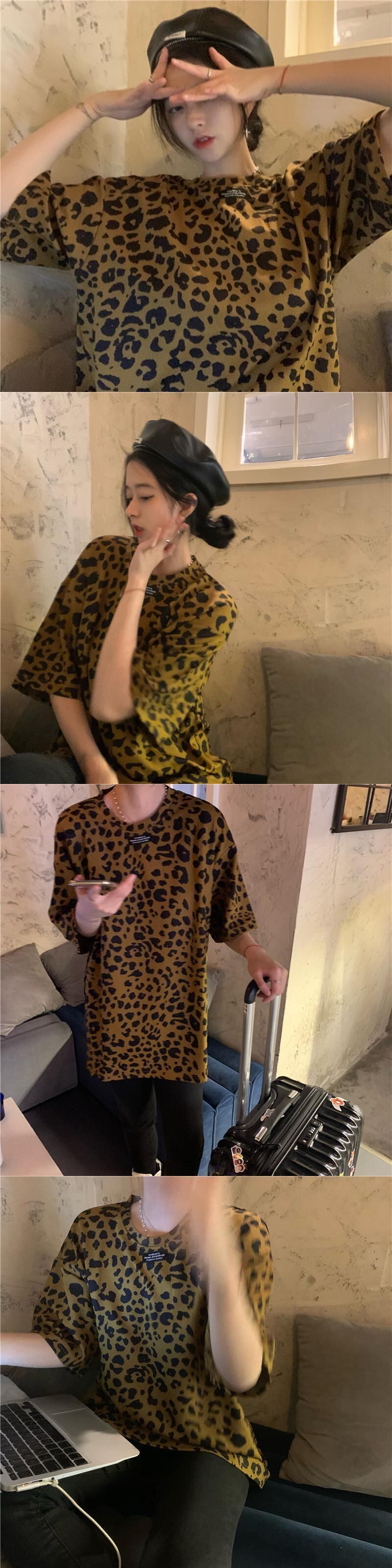 スタンダードレオパードプリント柄Tシャツ シャツ スプリングルーズトップス スタイル レトロ 春物 モンロー91380292508