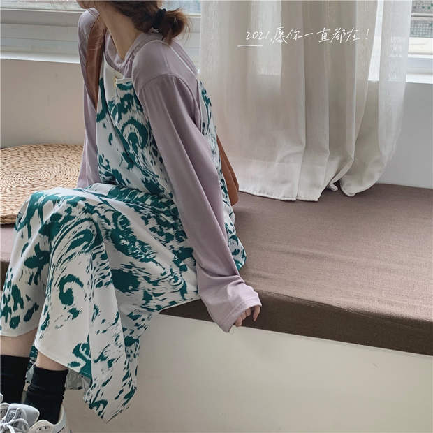 色:ピンクのTシャツ,緑のサスペンダースカート,ネイビーTシャツ,ブラウンサスペンダースカート