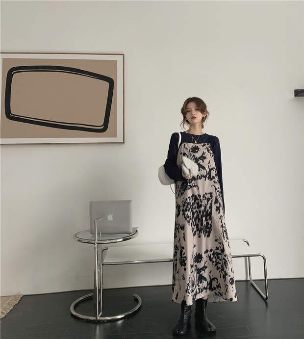 スタンダードドレス スカート スプリングロングAライン レトロ 春物 モンロー65841464663