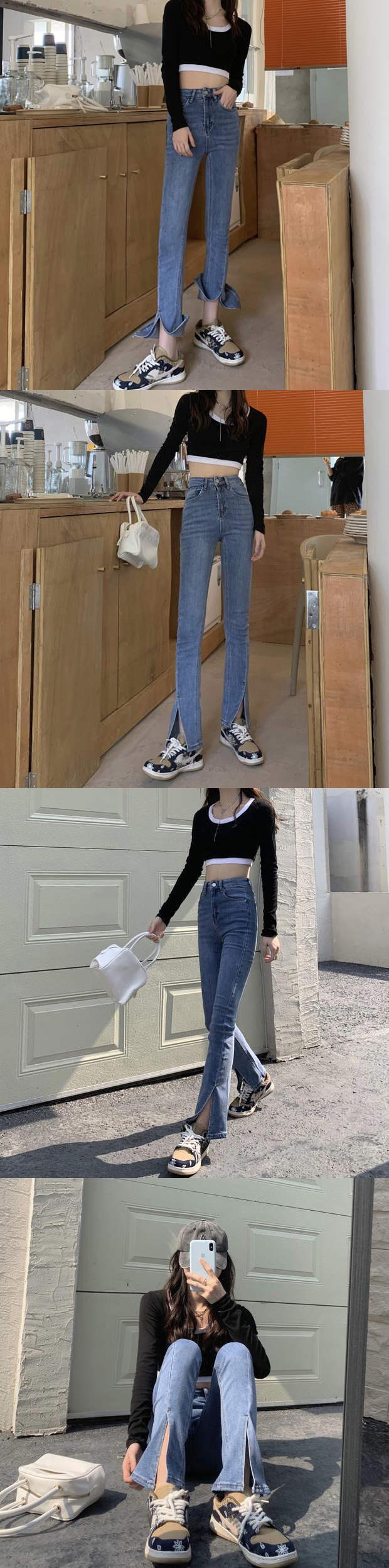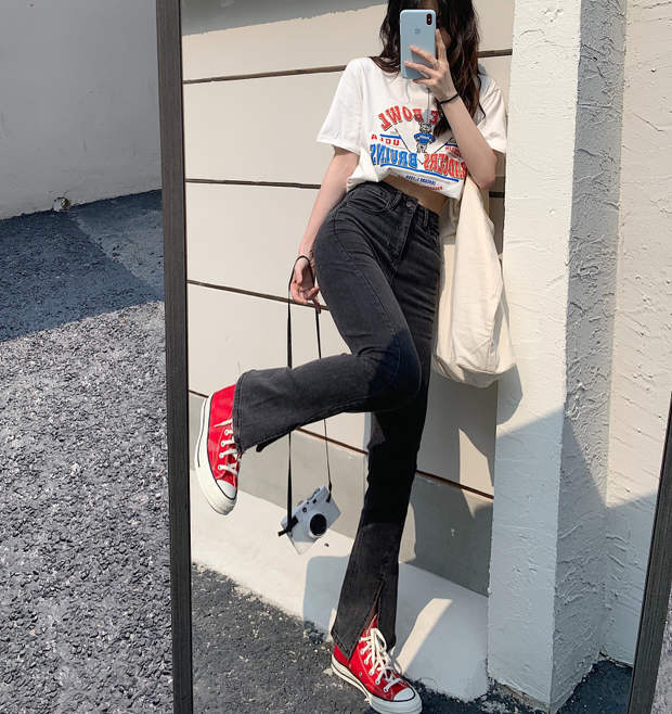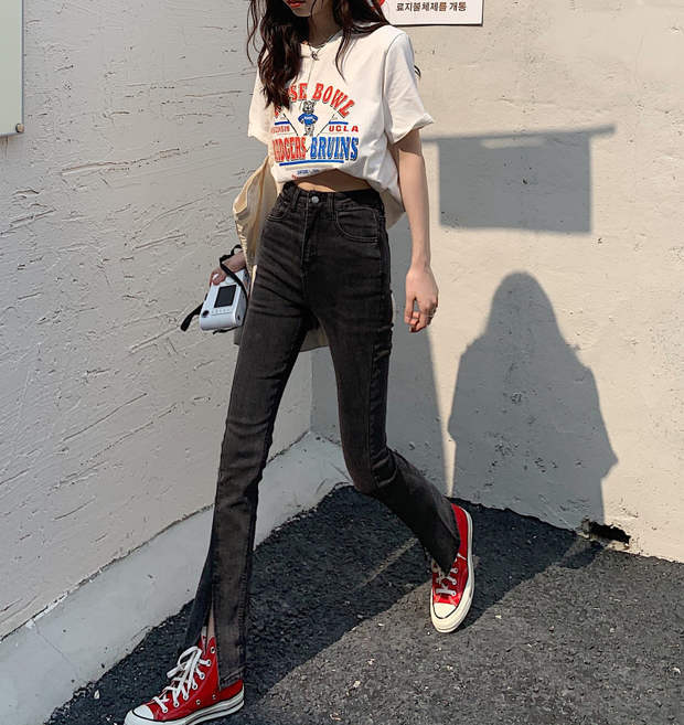 ウェストスリムパンツ スプリングオータムブラックジーンズ レッド 春物 秋物 モンロー83487381104