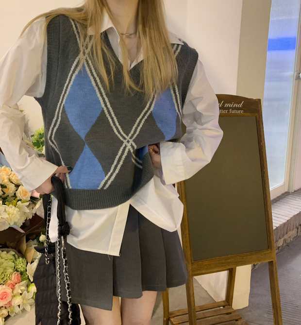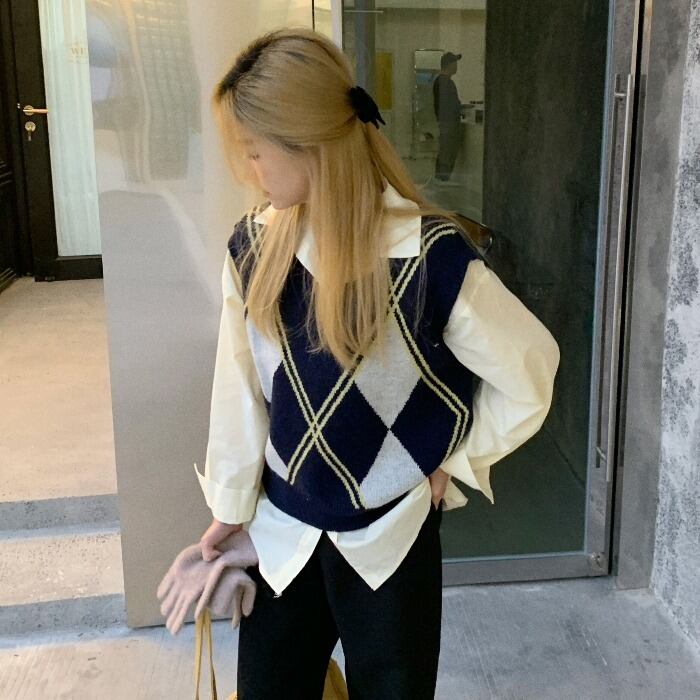 Vネックニットセーター ルーズショートノースリーブトップス 半袖 ハーフスリーブ モンロー72148102774