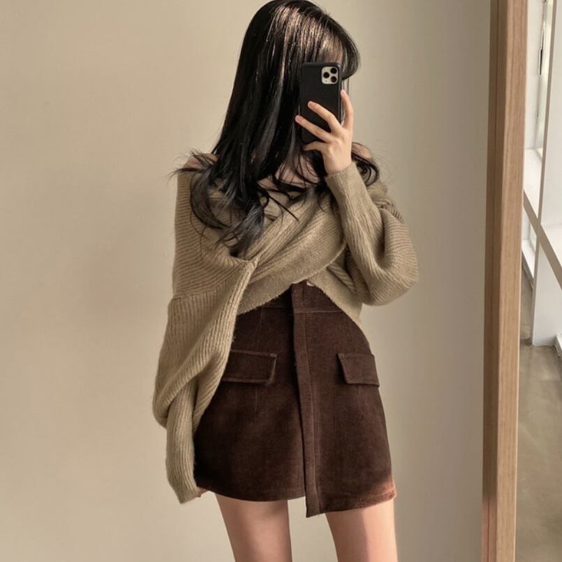 色:カーキ色のセーター,黒いセーター,ブラウンスカートS,ブラウンスカートM,黒スカートS,黒スカートM