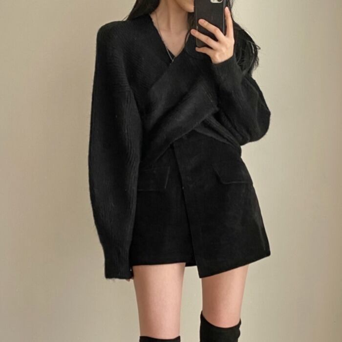 セーター スプリングスタイルVネックショートトップス コート 春物 モンロー93617251635