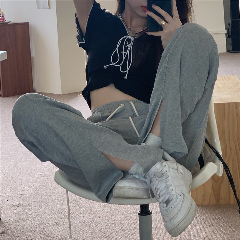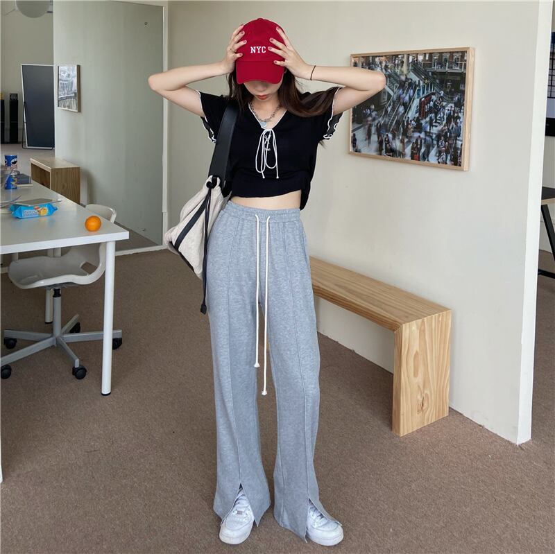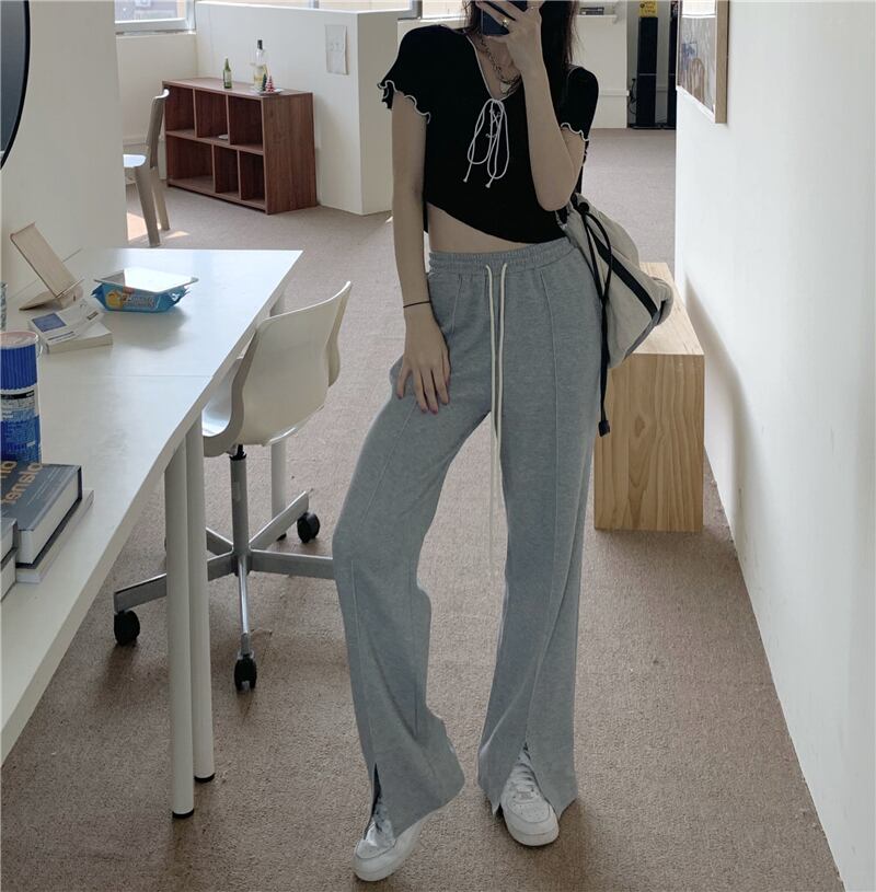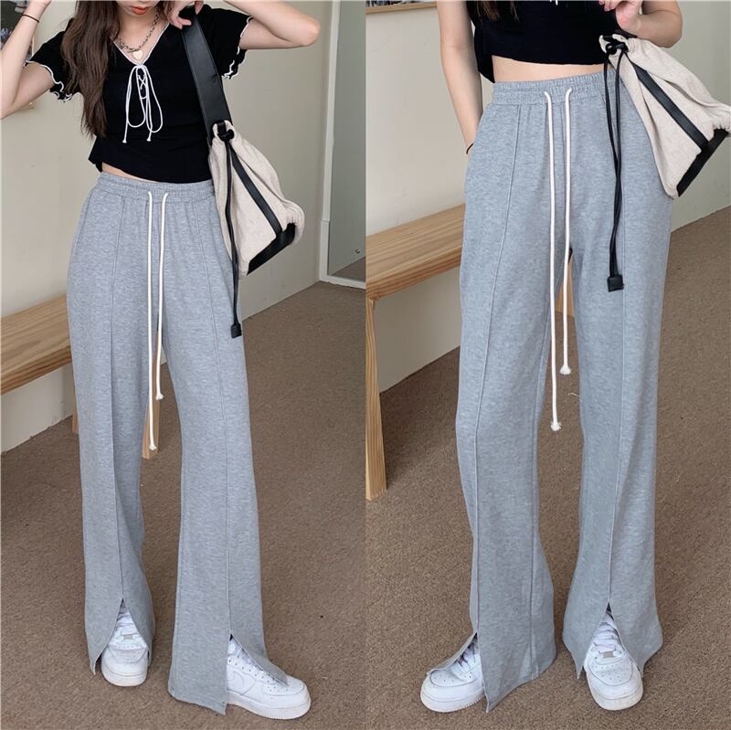 グレーパンツ カジュアルハイウェストルーズスプリング 春物 モンロー3549366947