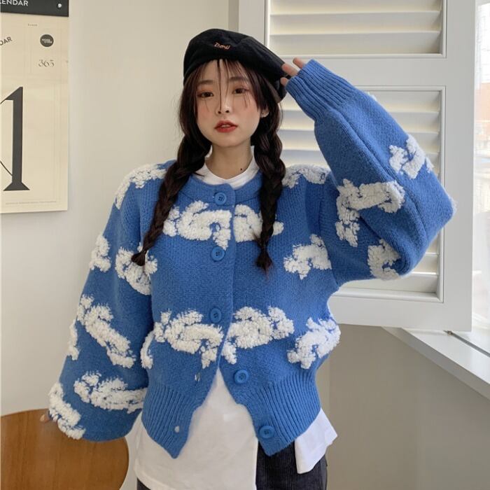 セーター ジャケット オータムウィンタールーズニットカーディガン長袖スリーブショートトップス ロング 秋物 冬物 モンロー97143510040