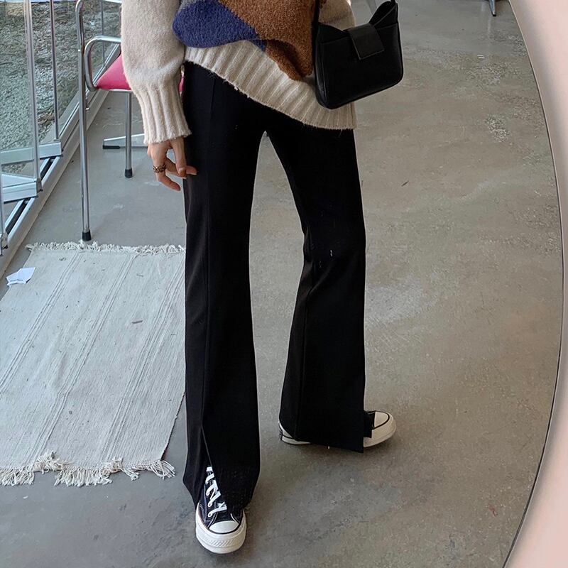 ブラックパンツ ハイウェスト薄手スプリングカジュアル レッド 春物 モンロー29929597432