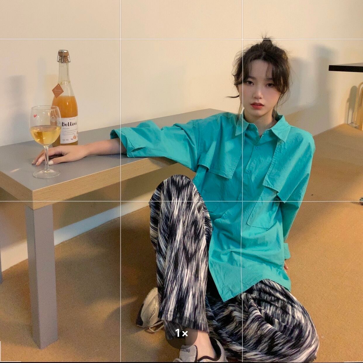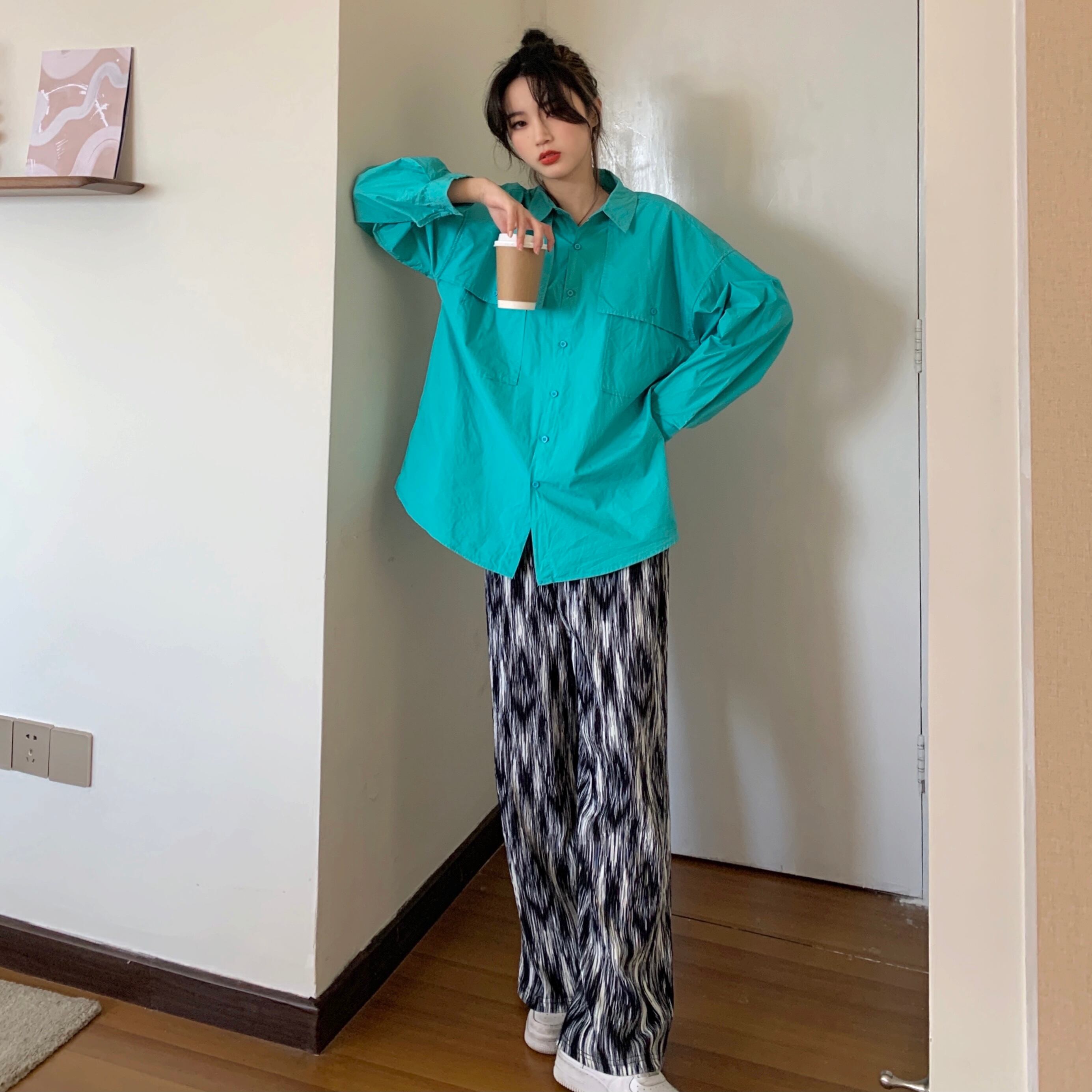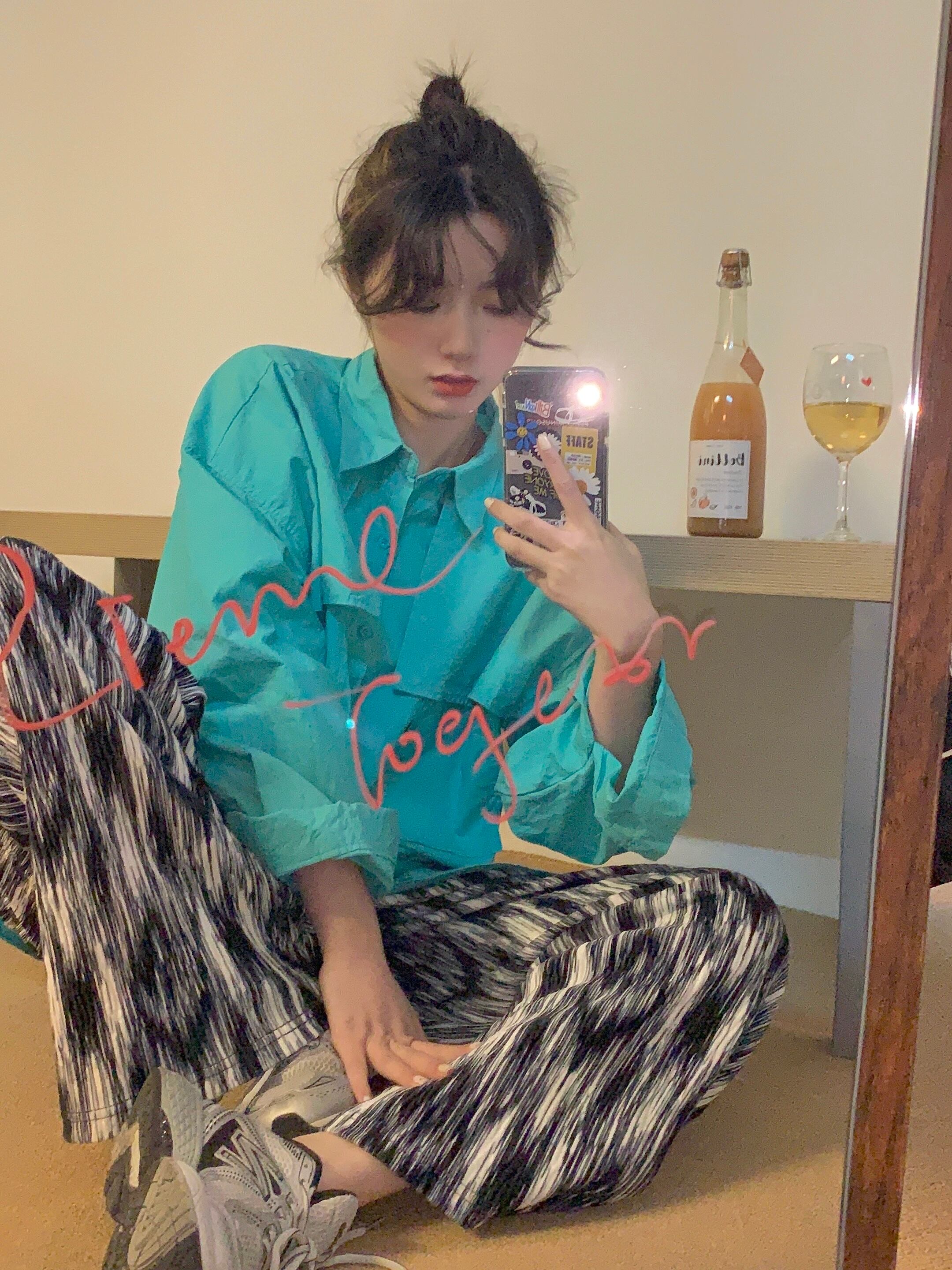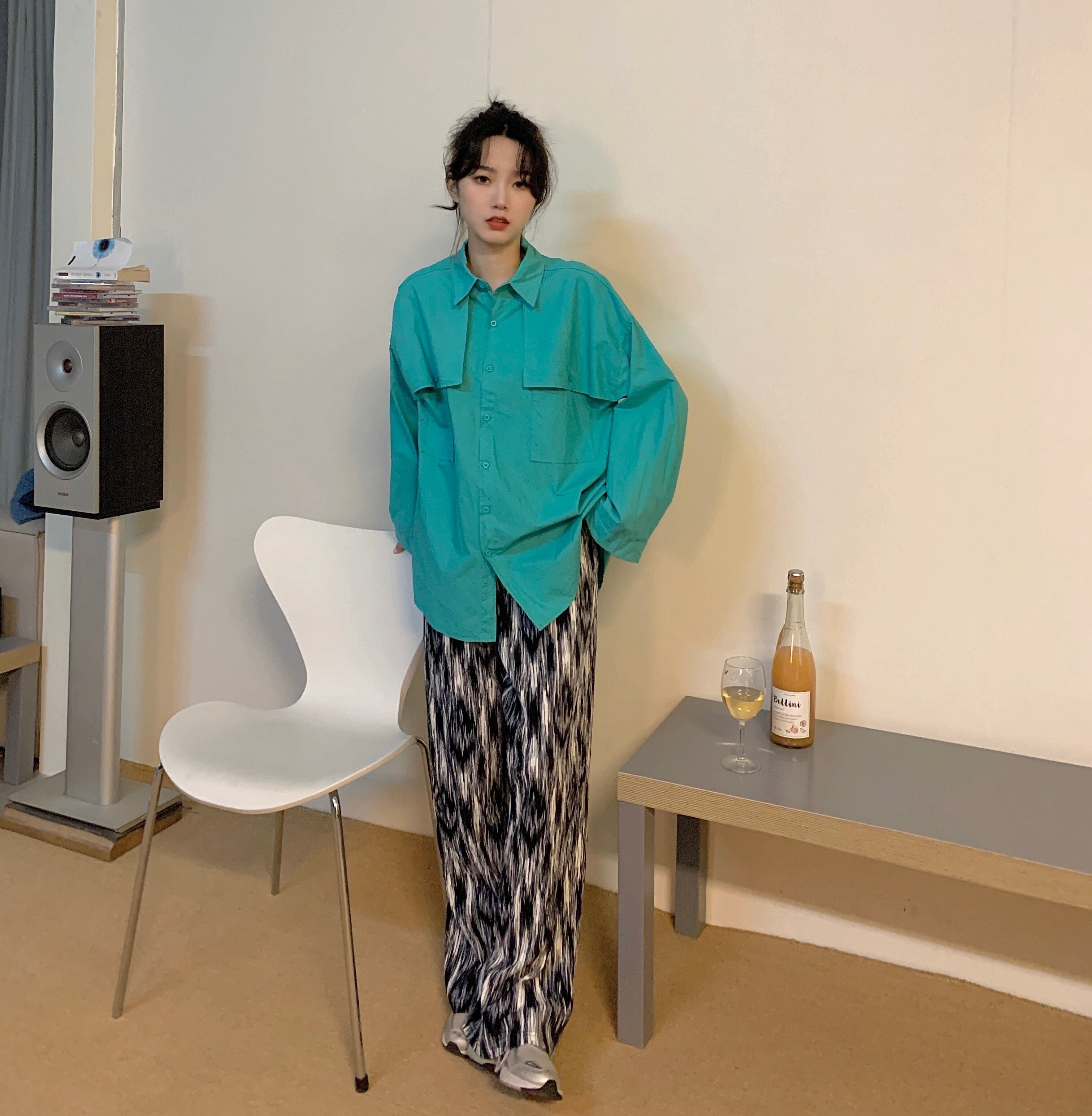 ブルーシャツ スプリングスタンダードルーズジャケット ロング レトロ 春物 モンロー98507325722