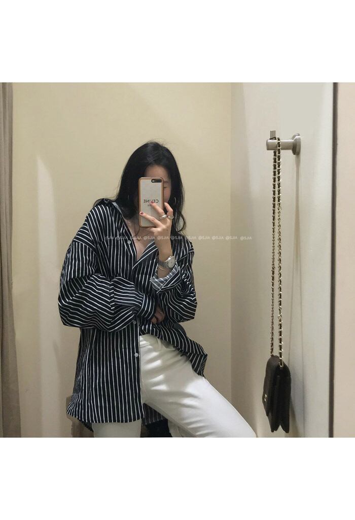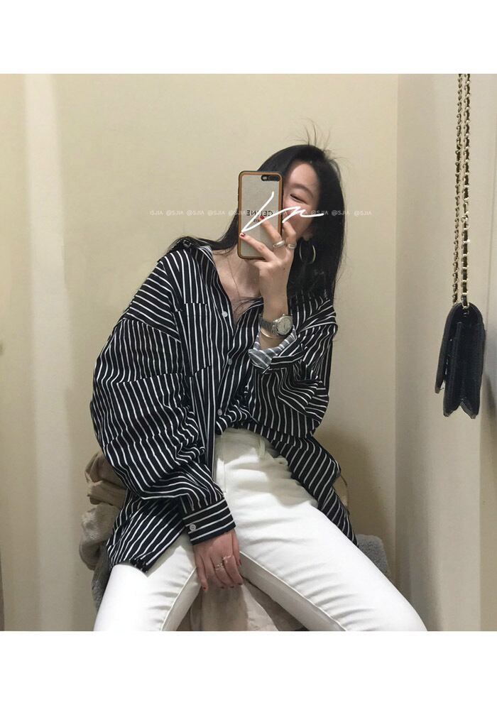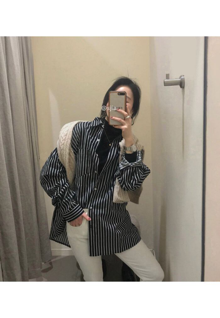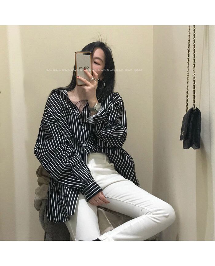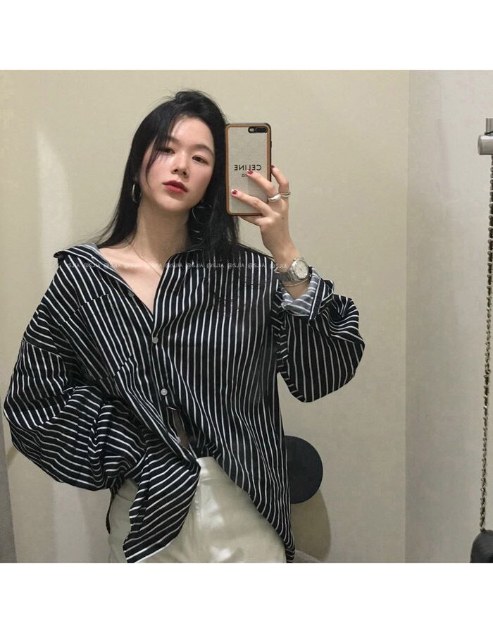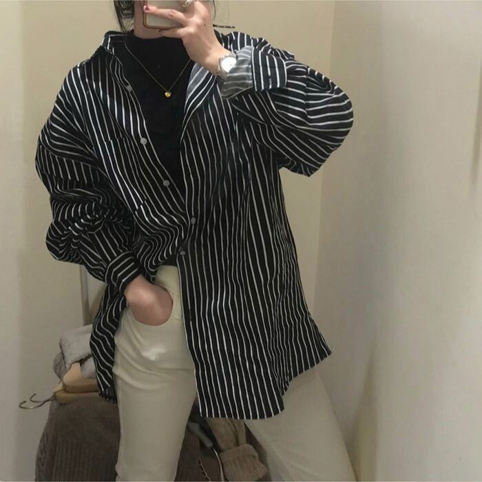 ストライプシャツ スプリングルーズトップス コート ロング 春物 モンロー68616217131