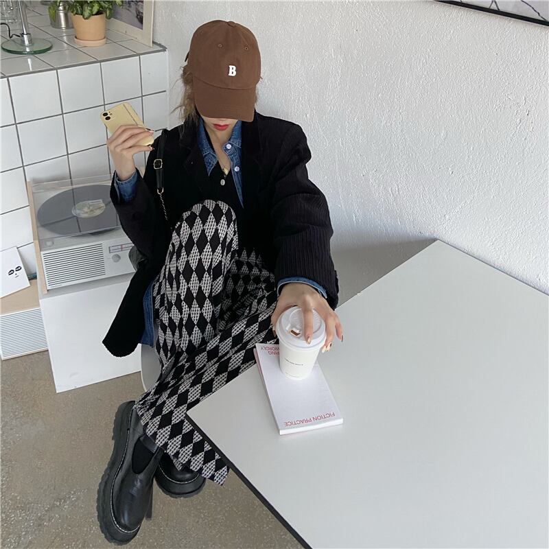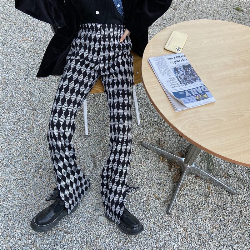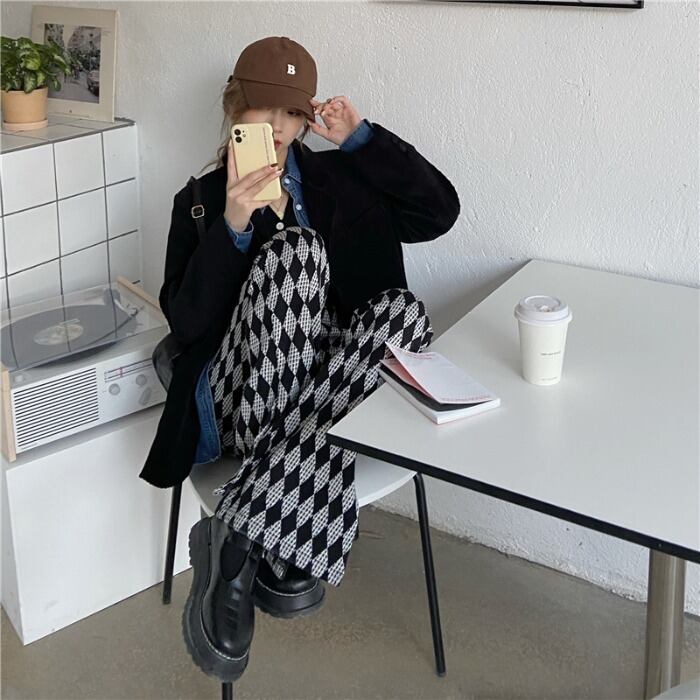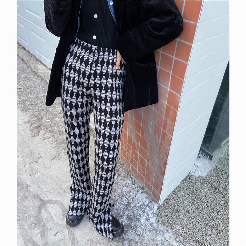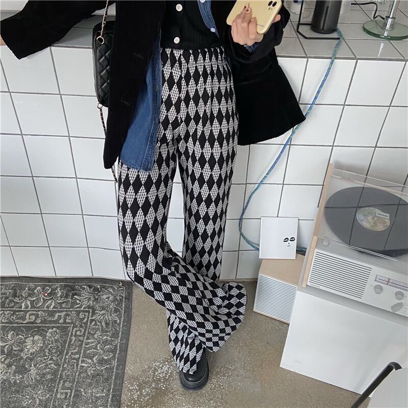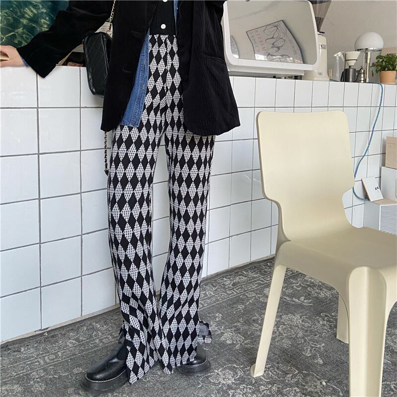 格子柄ハイウェストスリムカジュアルルーズスリット レッド モンロー68515098360