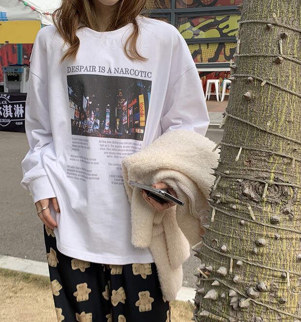 ブラックTシャツ シャツ レディーススプリングスタイルルーズトップス ロング 春物 モンロー25117028930