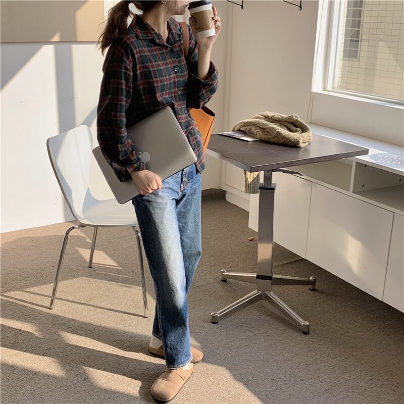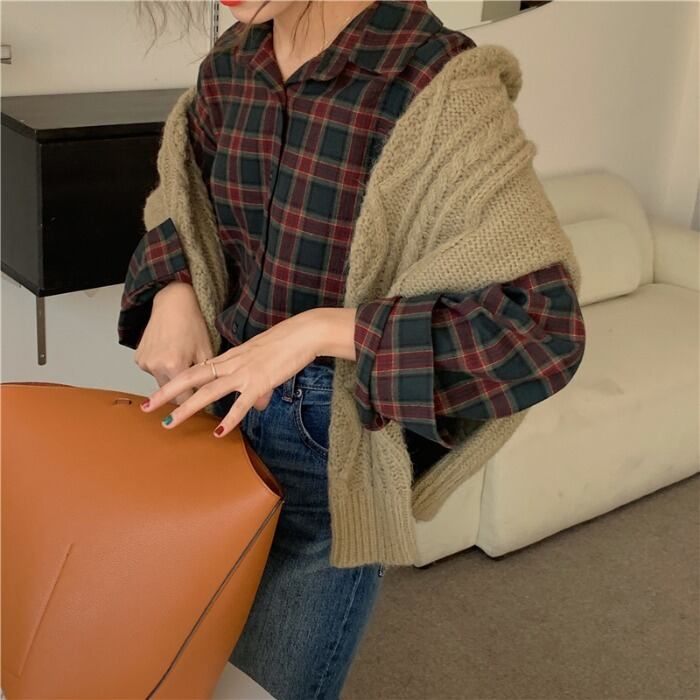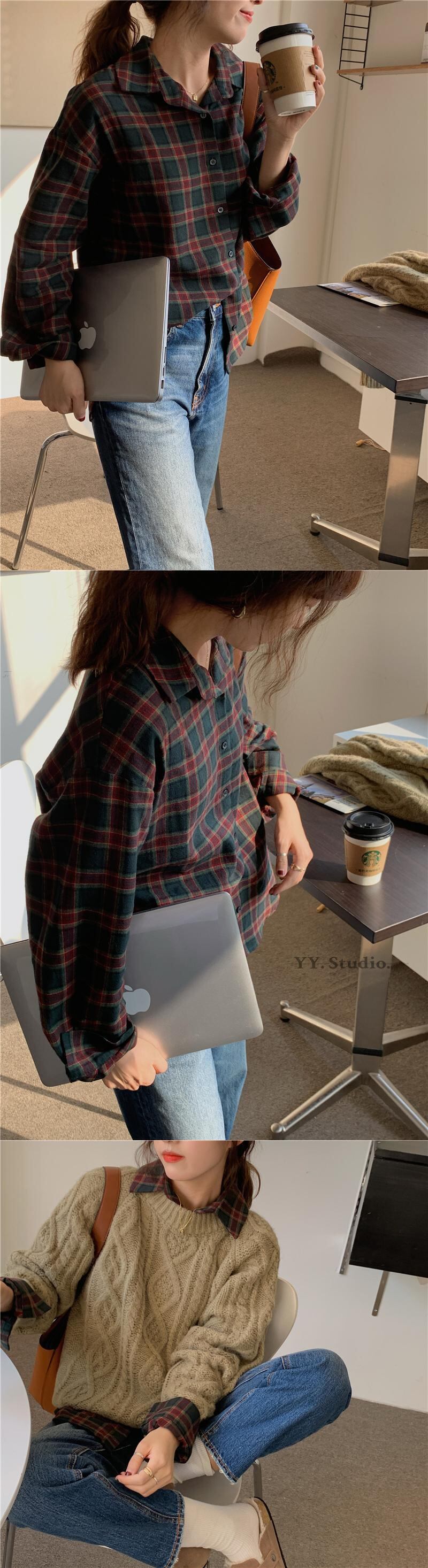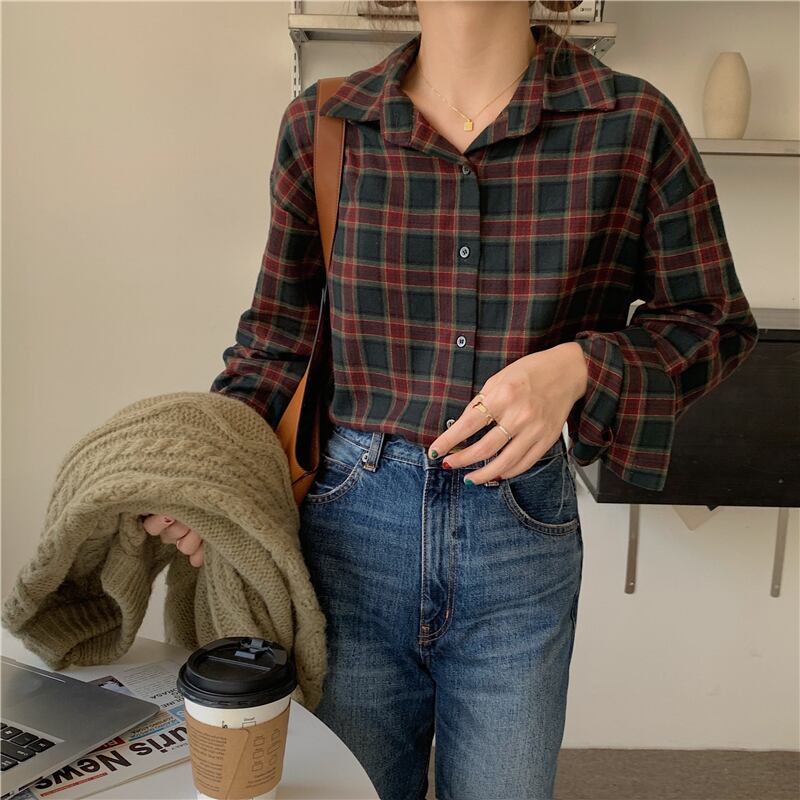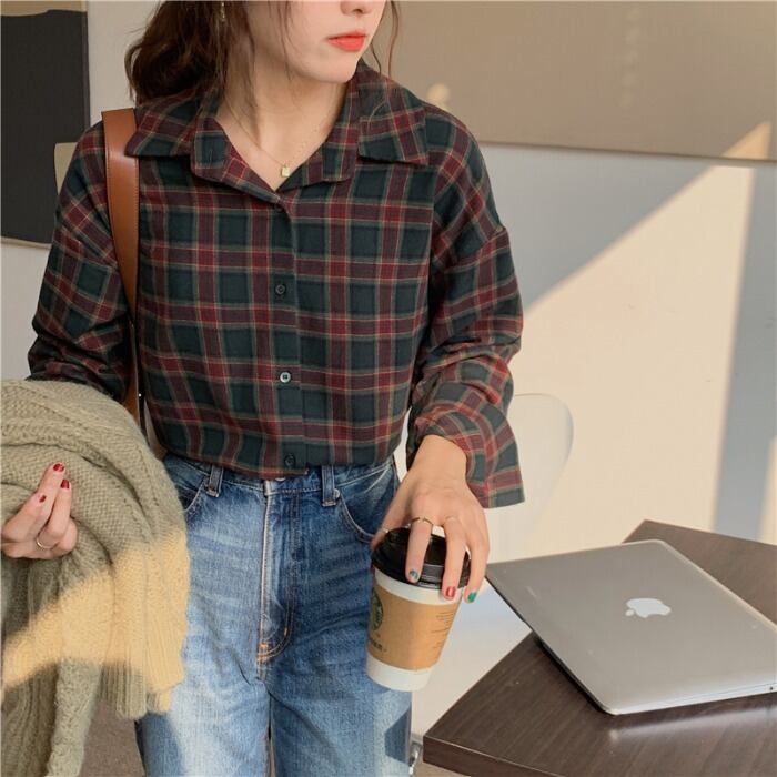 格子柄シャツ レディーススタンダードスタイルジャケット スプリングトップス ロング レトロ 春物 モンロー98637321446