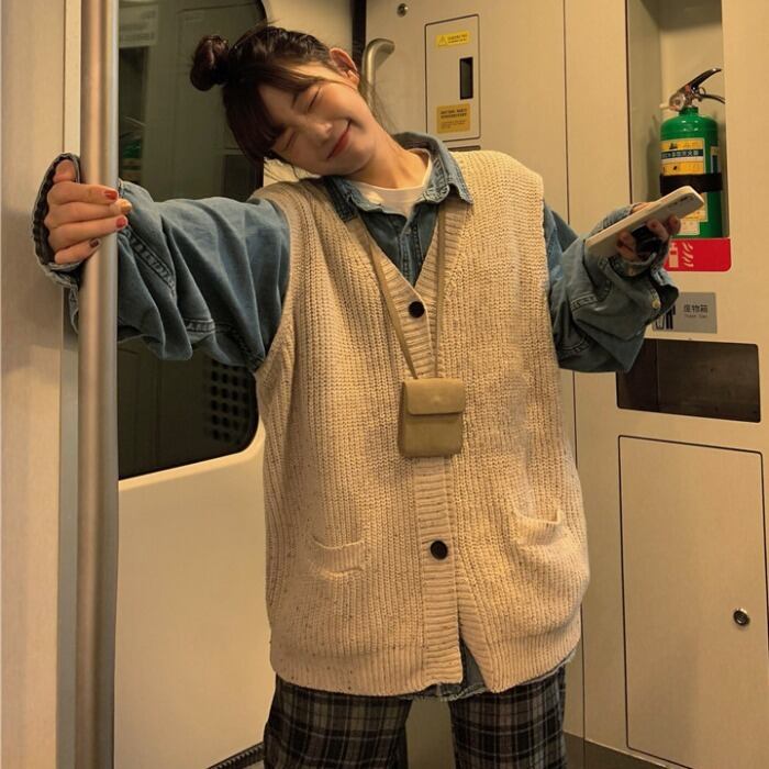 スタンダードニットジャケット レディーススプリングオータムVネックセーター カーディガン レトロ 春物 秋物 モンロー14303386411