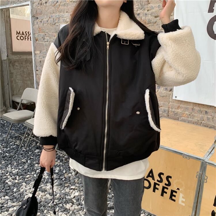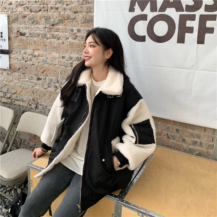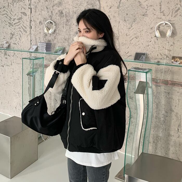ウールジャケット レディースオータムウィンターベルベットルーズショート ストリート 秋物 冬物 モンロー10720217466