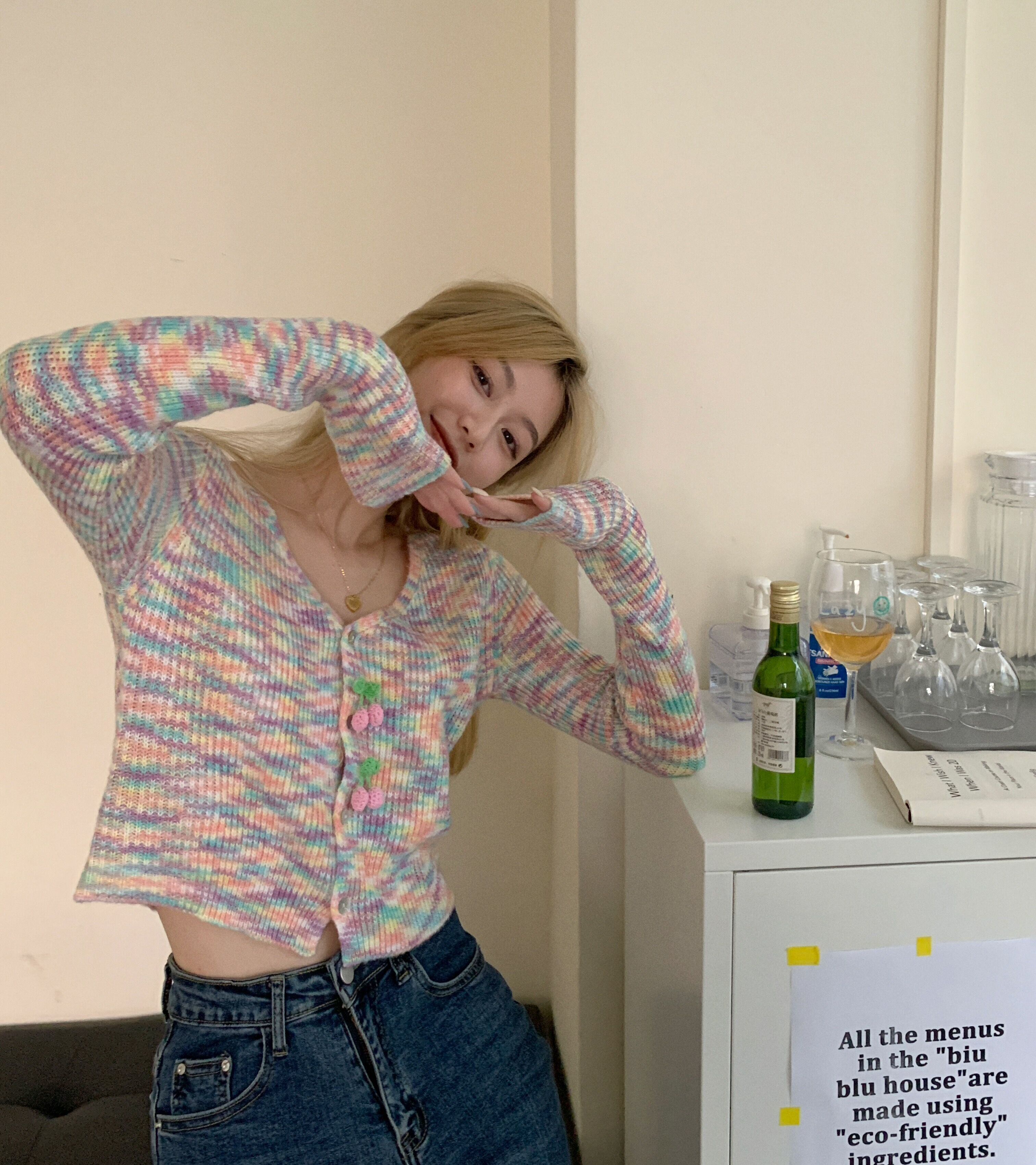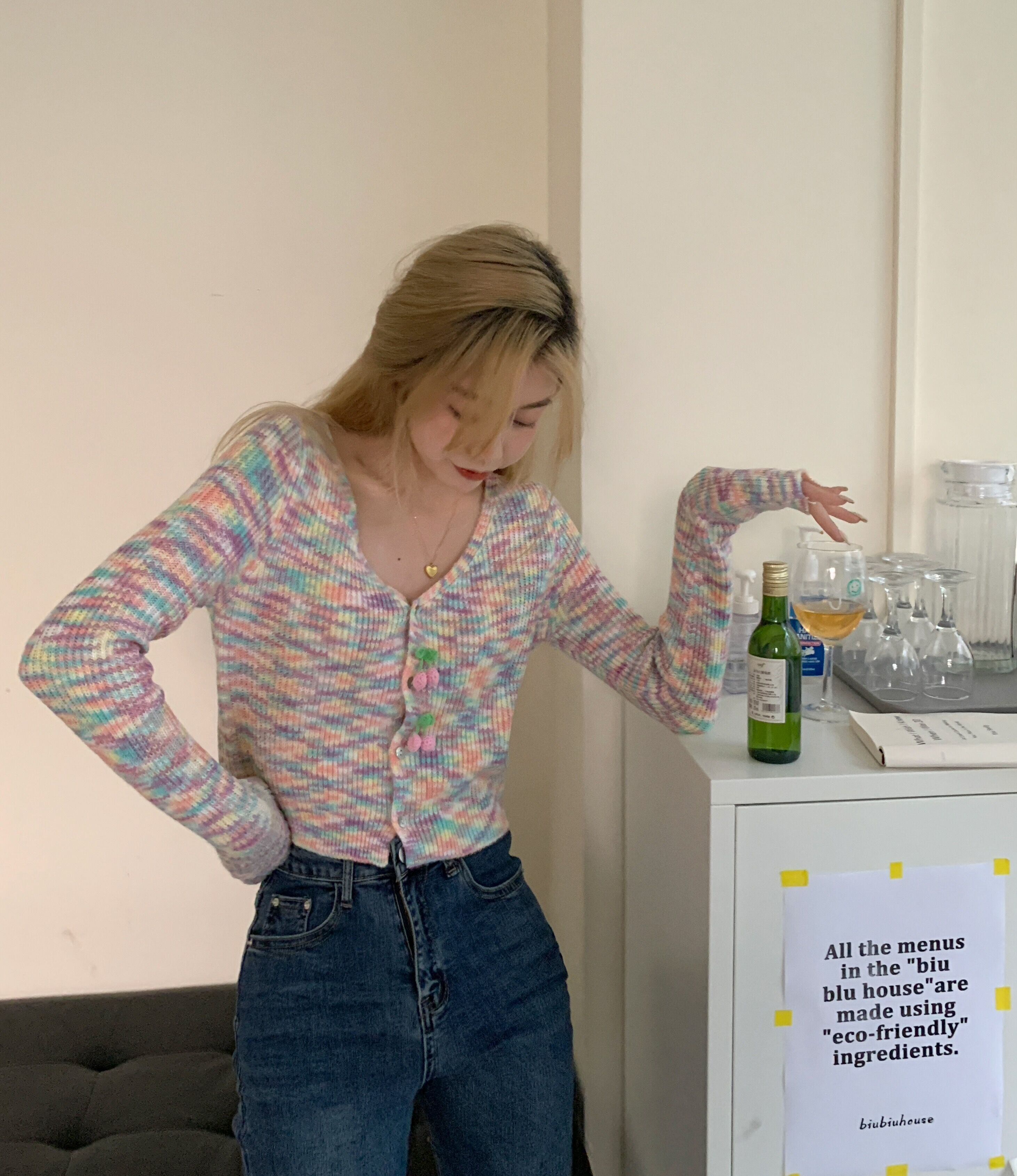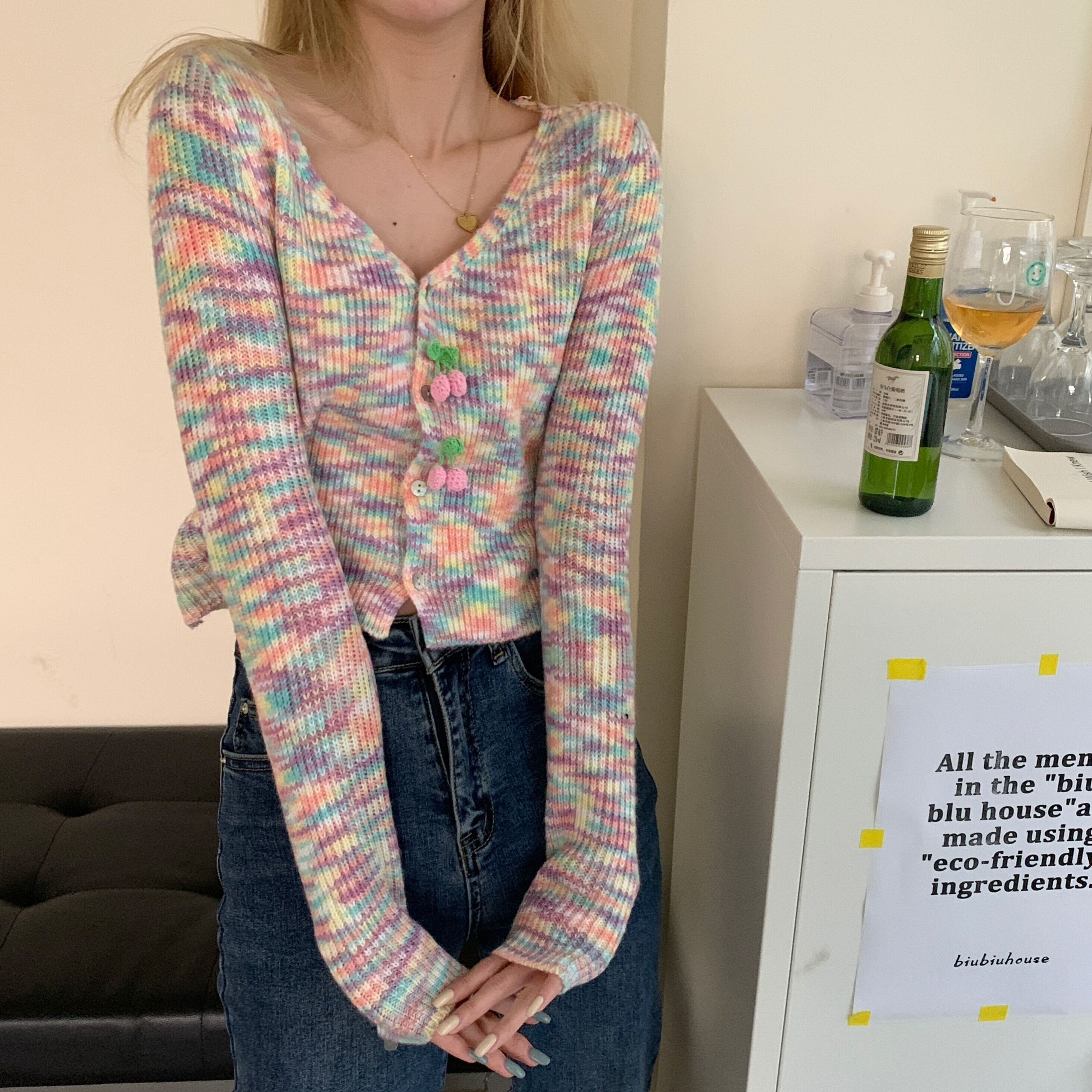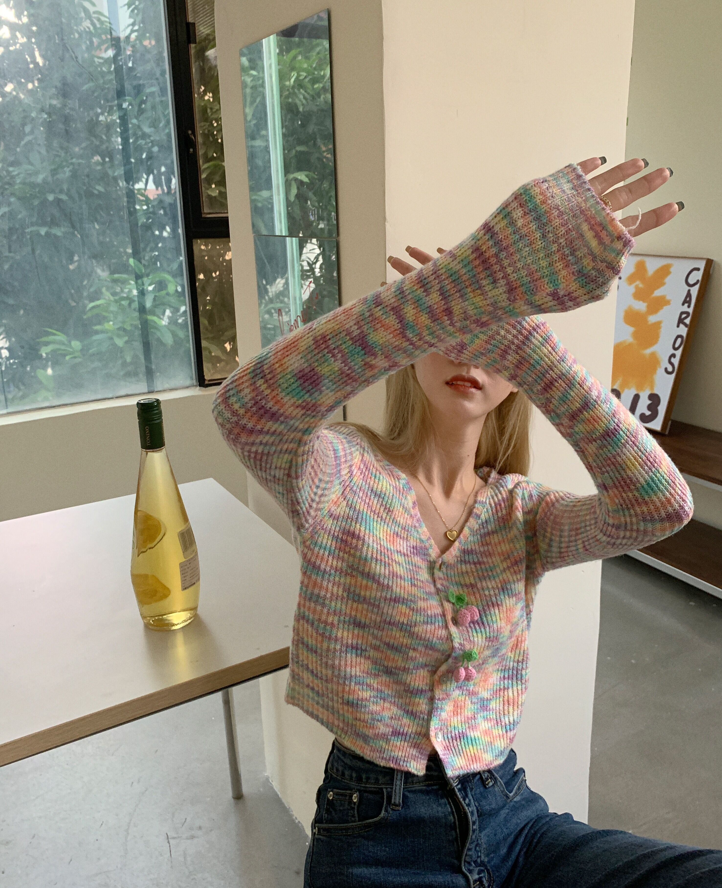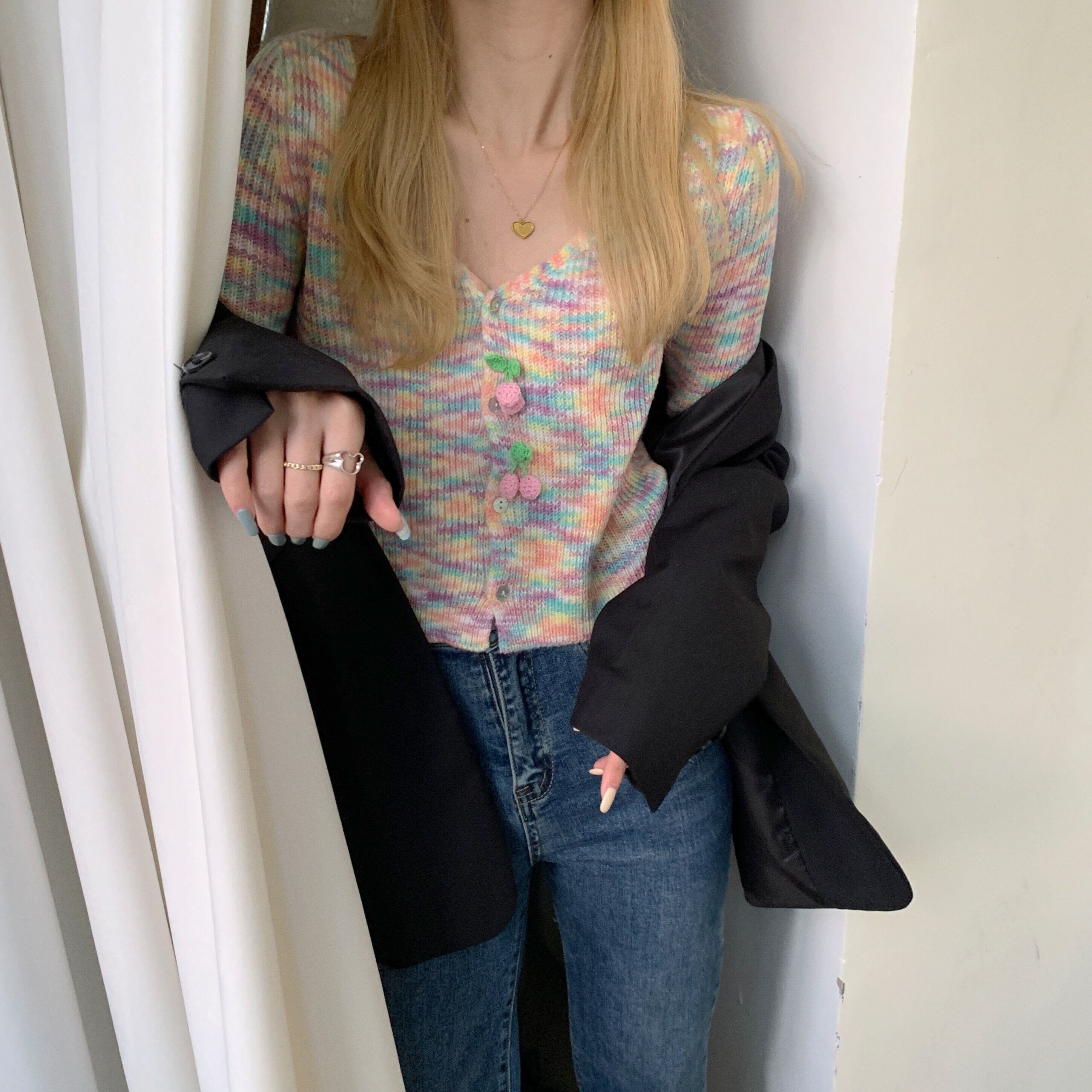 Vネックカーディガンセーター レディースルーズニットオータムウィンタースタイルシャツ ショートトップス コート 秋物 冬物 モンロー71083386513