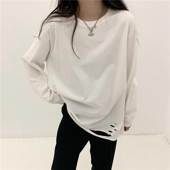 薄手シャツ Tシャツ レディーススプリングルーズトップス ロング 春物 モンロー28693979885