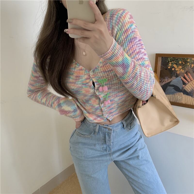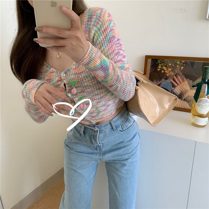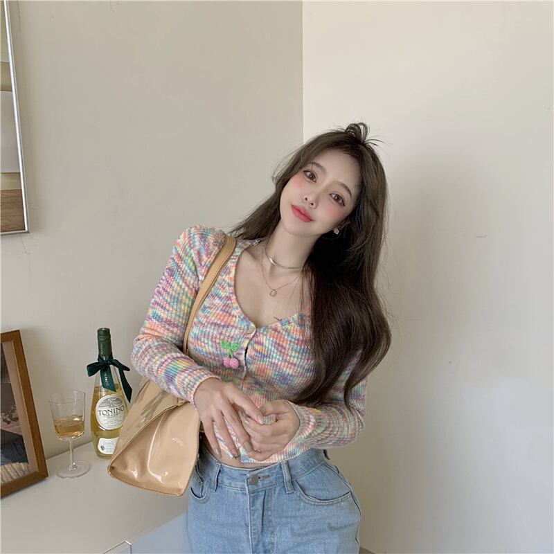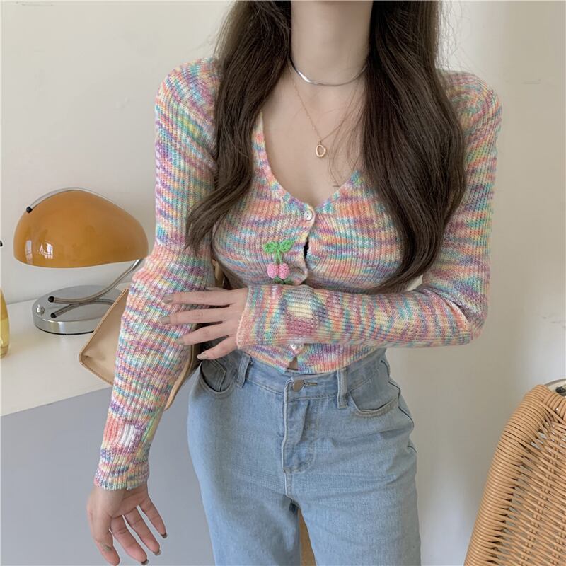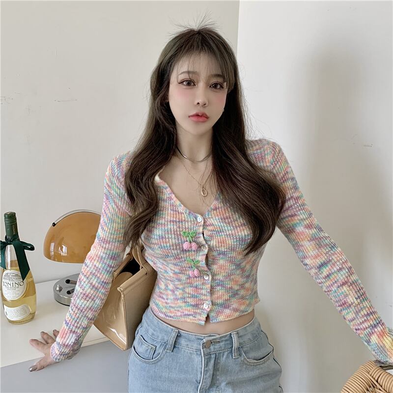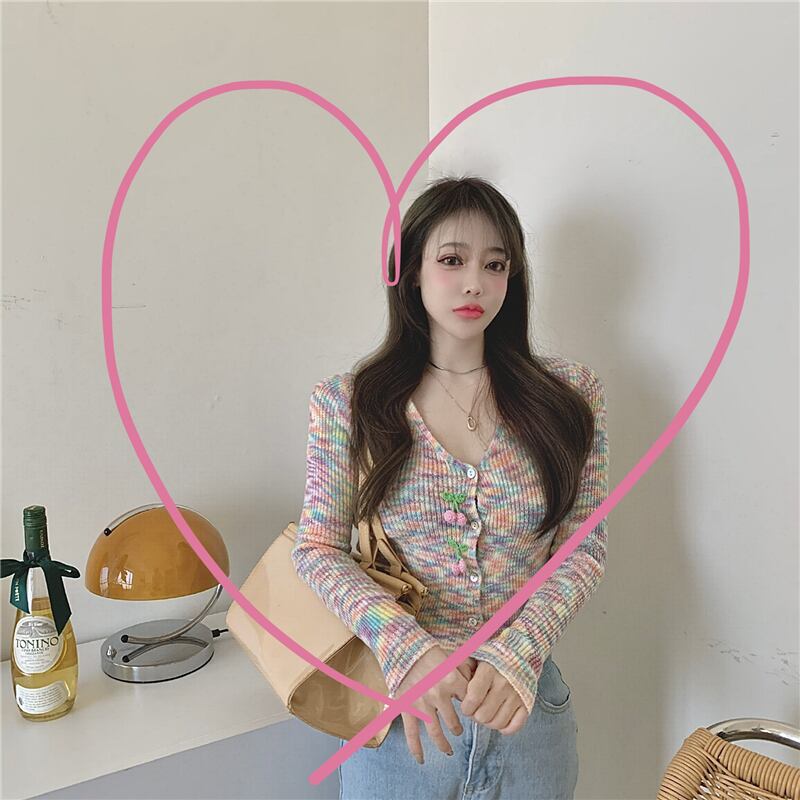 スタイルニットセーター コート スプリングVネックカーディガンショートスリムトップス 春物 モンロー64290030140