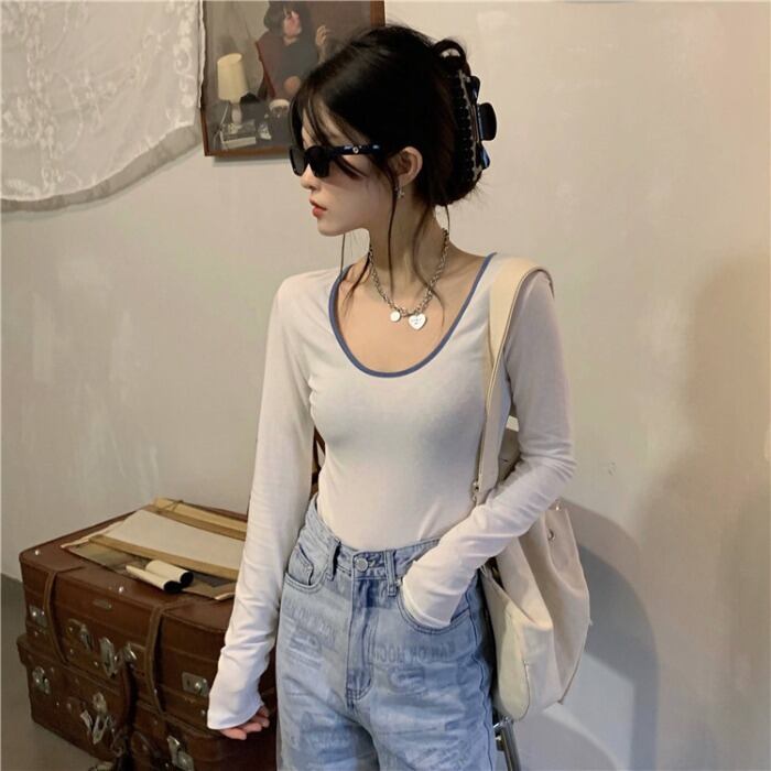 Tシャツ シャツ スプリングスリムトップス ロング 春物 モンロー27671866083