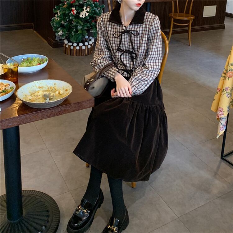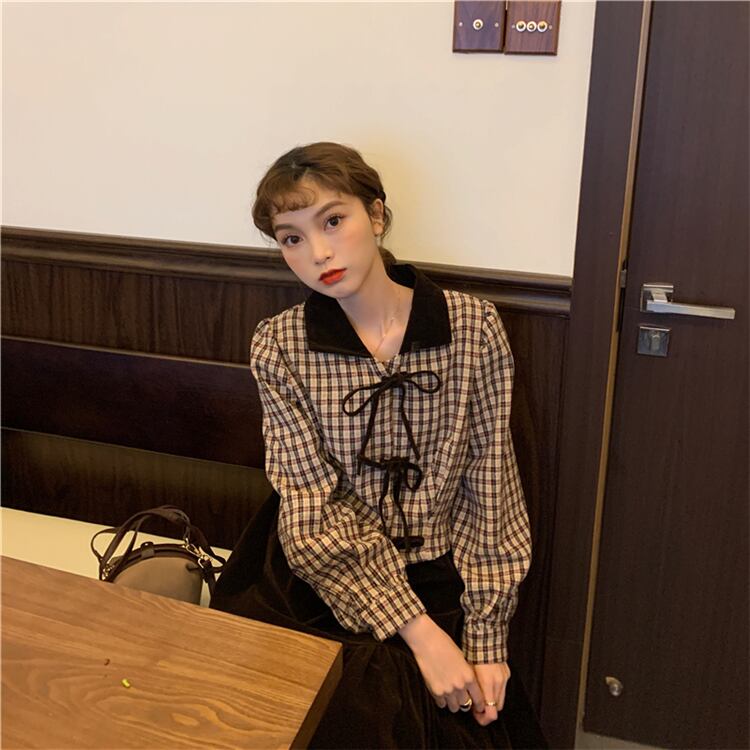 格子柄シャツ スプリングジャケット カラートップス ロング 春物 モンロー75874288965