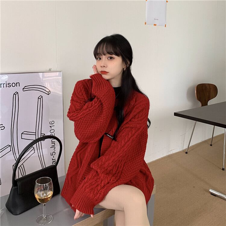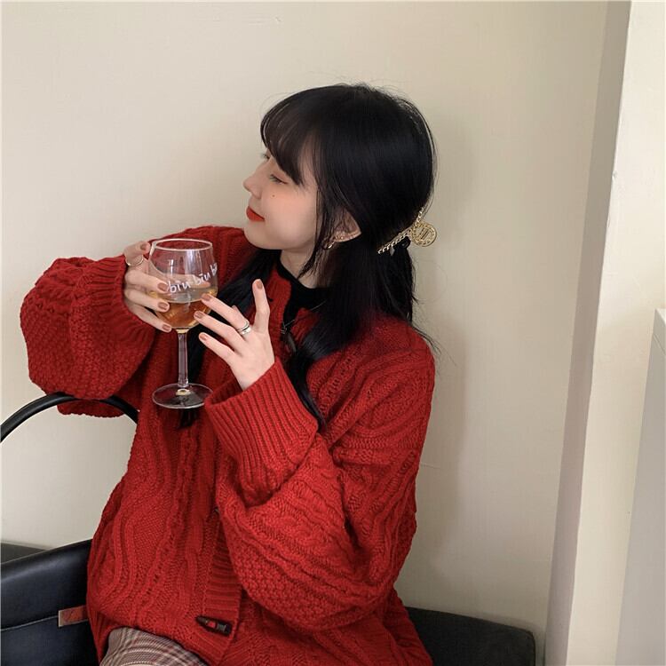 レッドセーター ジャケット レディースルーズ長袖スリーブニットショートトップス カーディガン ロング モンロー59632630665