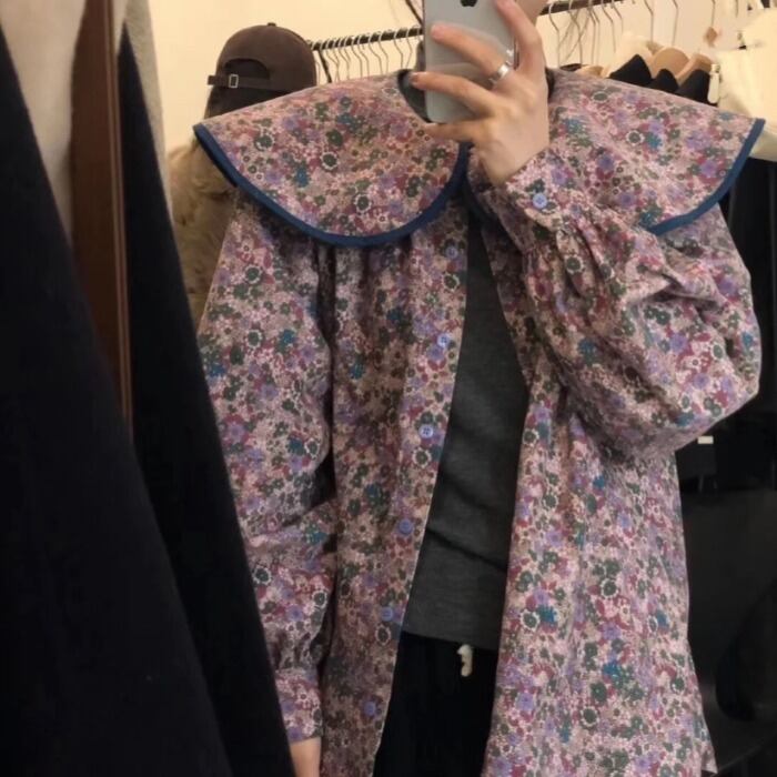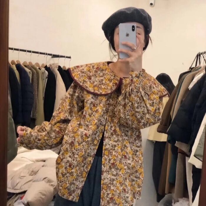 カラーブラウス レディーススタンダードフローラルシャツ スプリングジャケット ロング レトロ 春物 花柄 モンロー38015211009