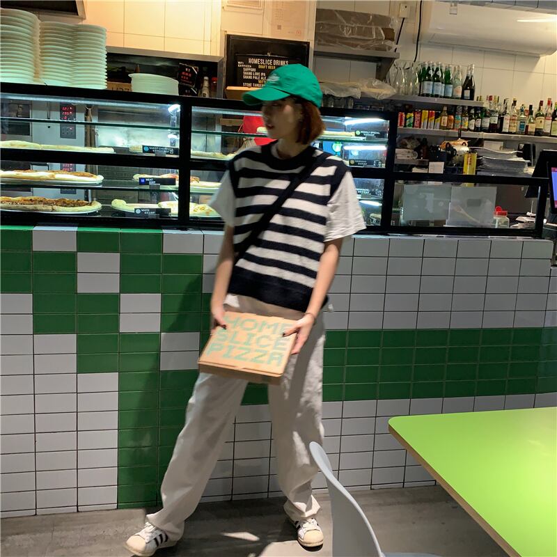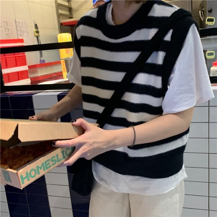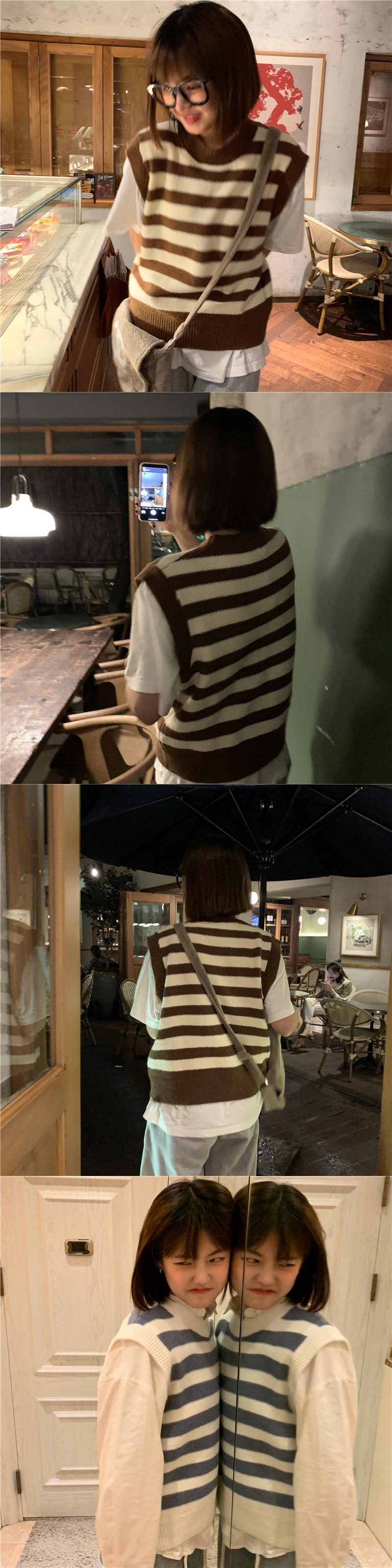 ストライプニットノースリーブクロップドトップス アウターセーター モンロー95825385680