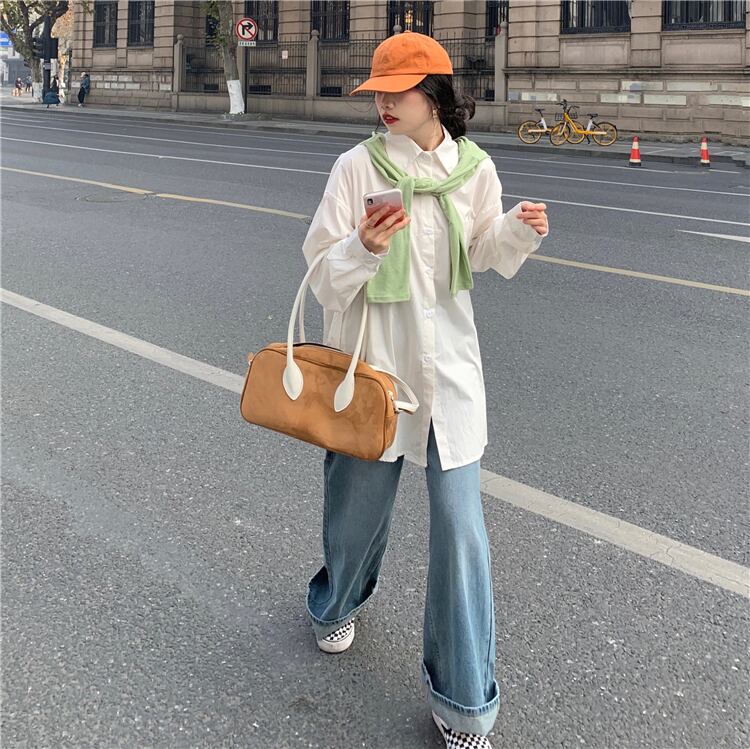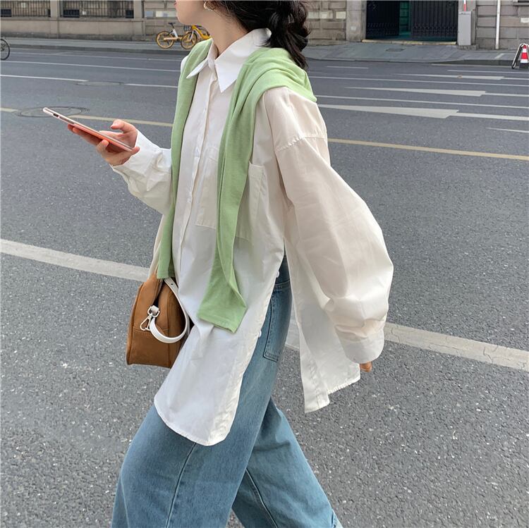 ホワイトシャツ スプリングトップス ルーズジャケット ロング 春物 モンロー31818789956