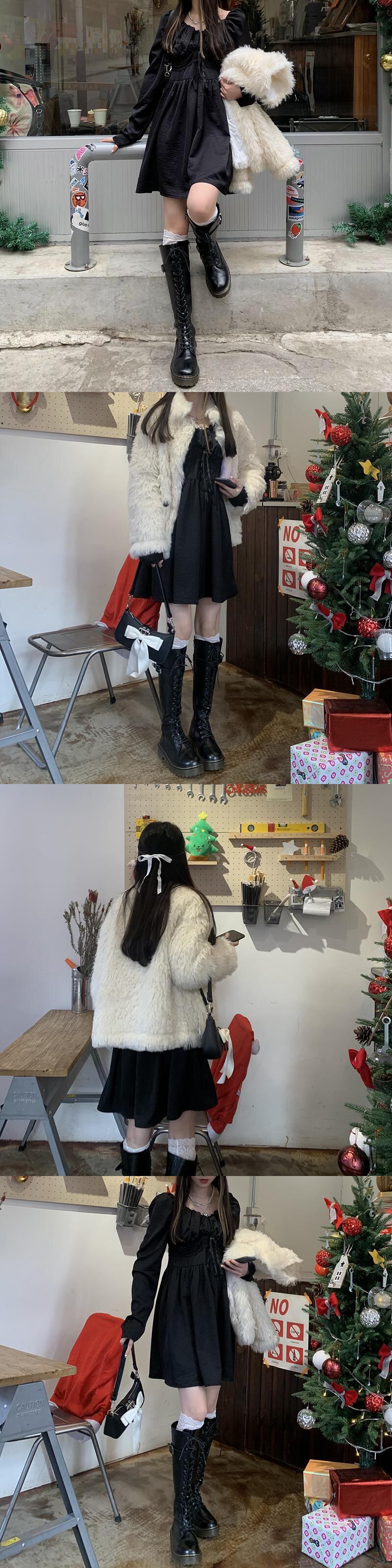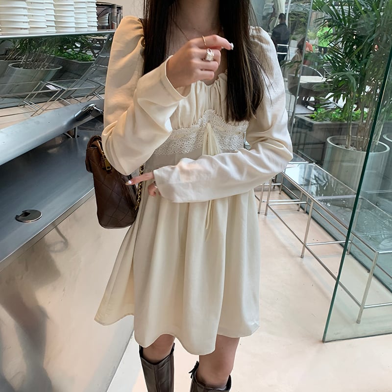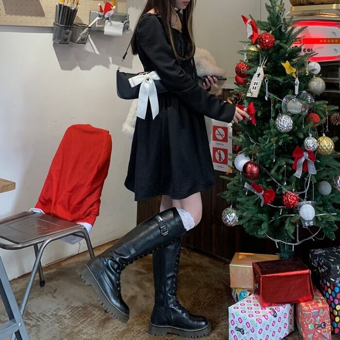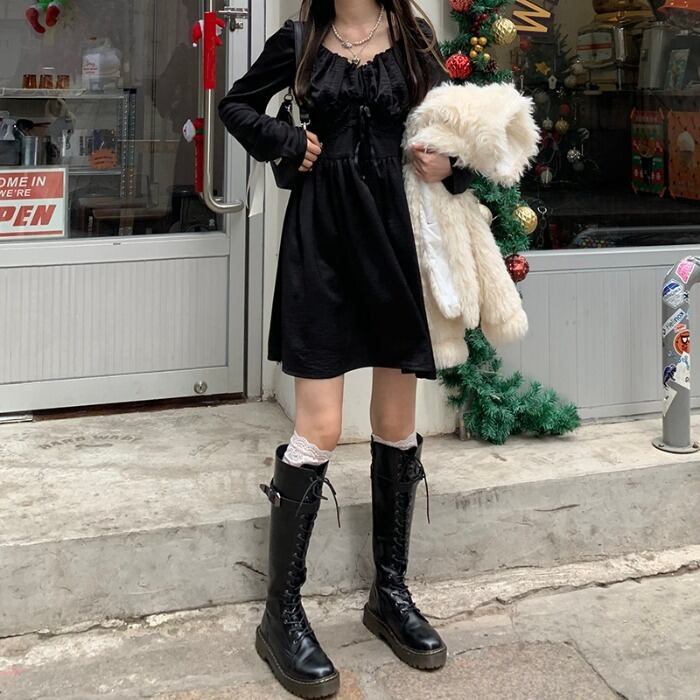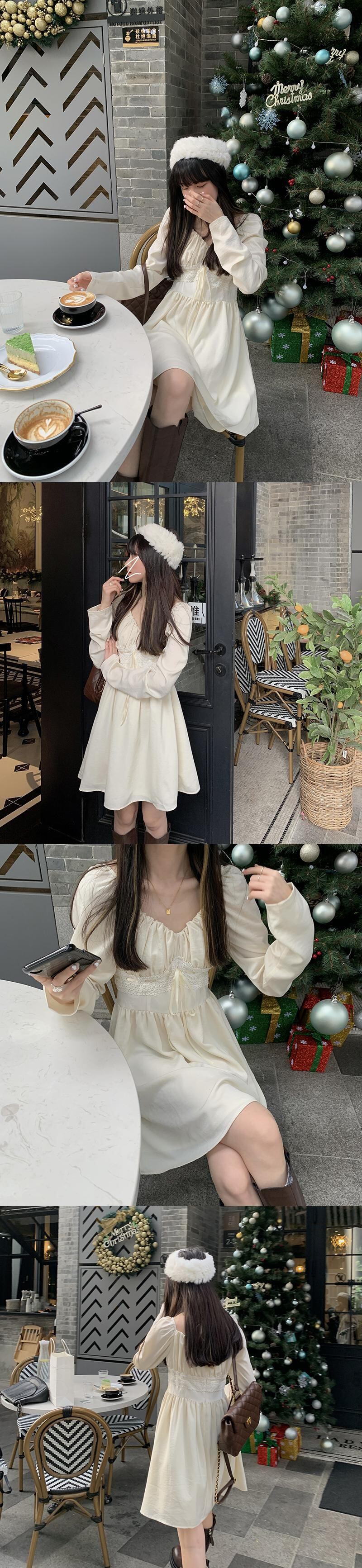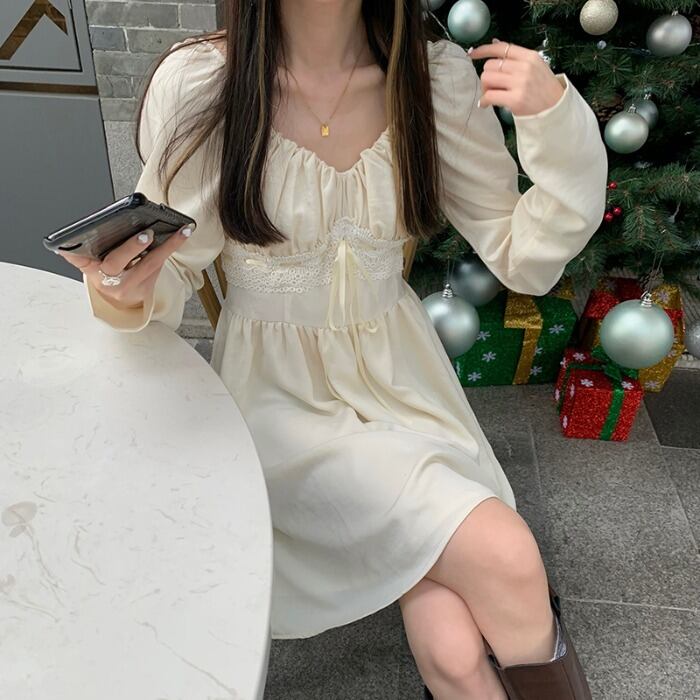 スタンダードVネックドレス オータムウィンターウェスト薄手スカート Aラインロング レトロ 秋物 冬物 モンロー44166087499