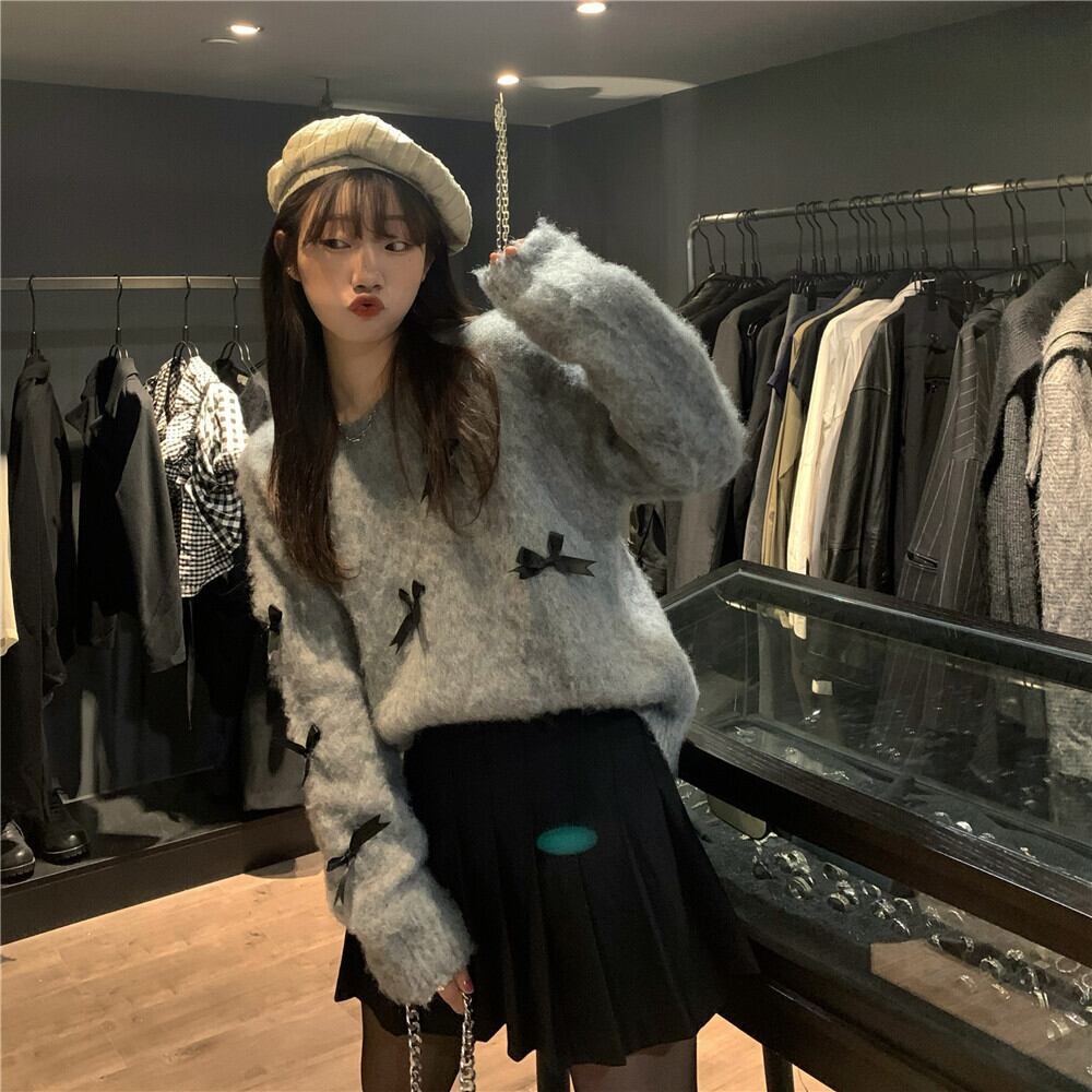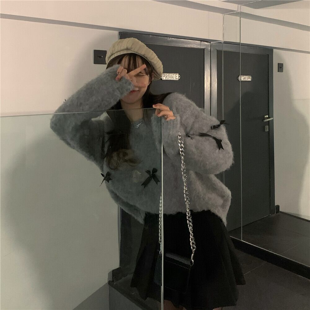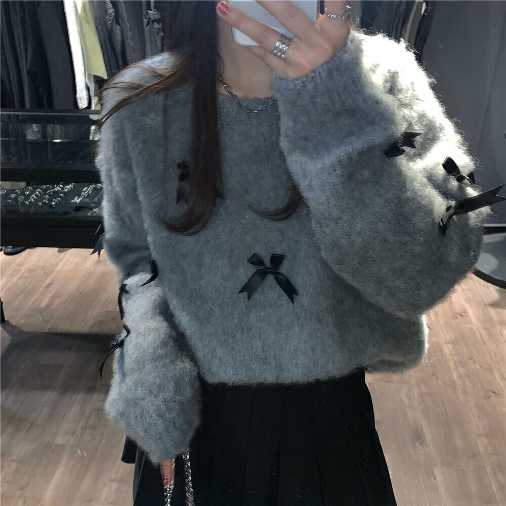 グレーセーター レディースルーズスタイルオータムウィンターシャツ ニットトップス 秋物 冬物 モンロー70043312937