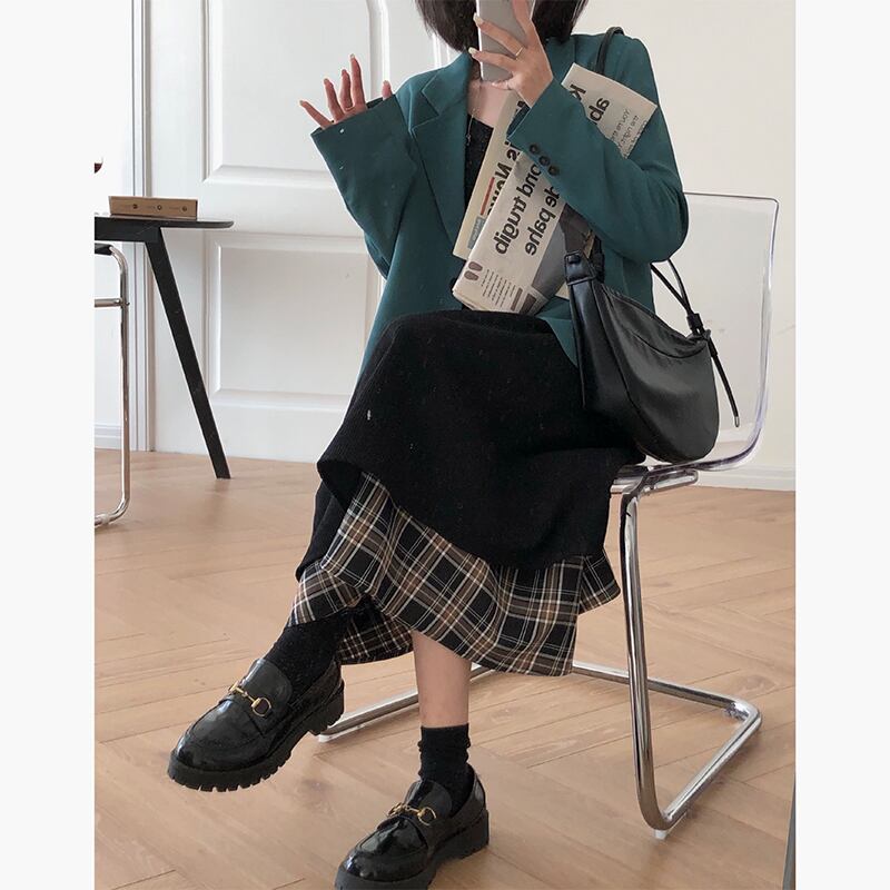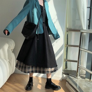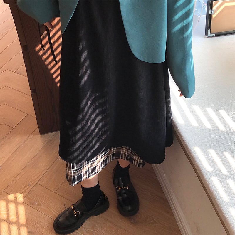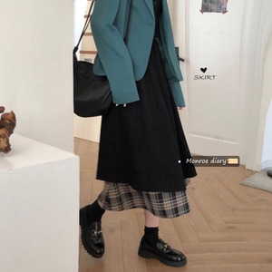 スタンダード格子柄スカート コーデュロイAラインハイウェストウェストロングオータムウィンターセーター レトロ 秋物 冬物 モンロー97157187085