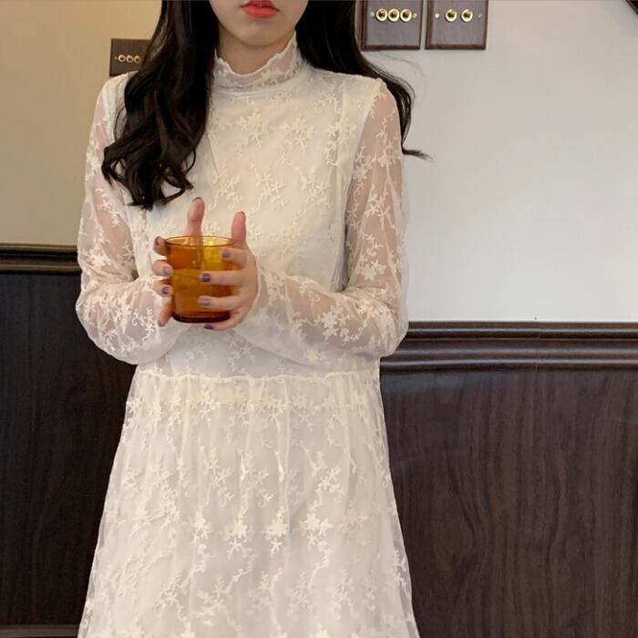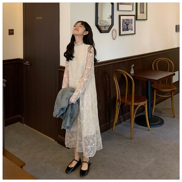 スタンダードホワイトドレス オータムウィンタースカート ロング レトロ 秋物 冬物 モンロー73854549700