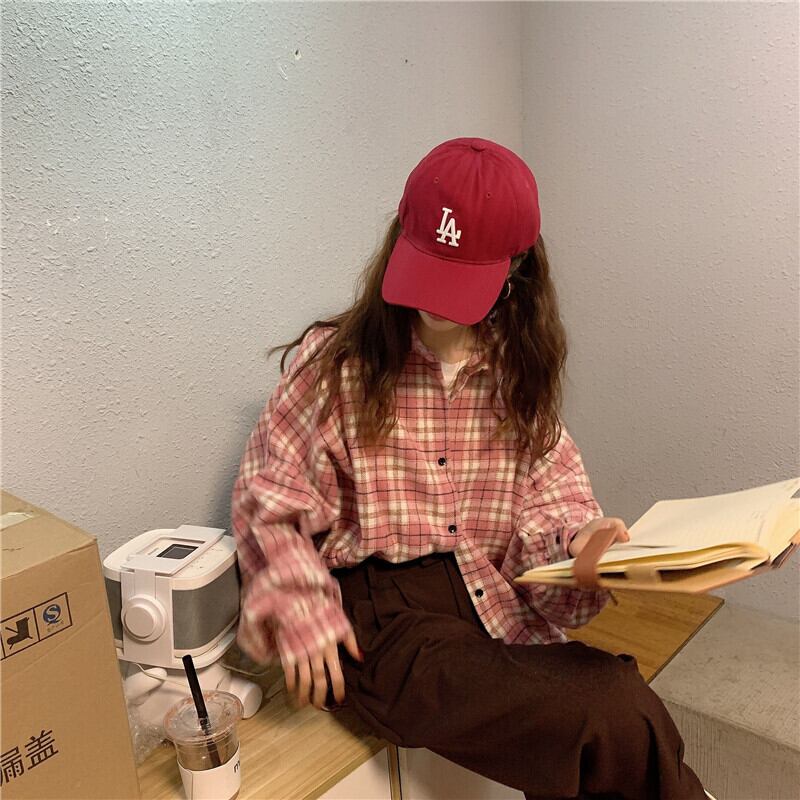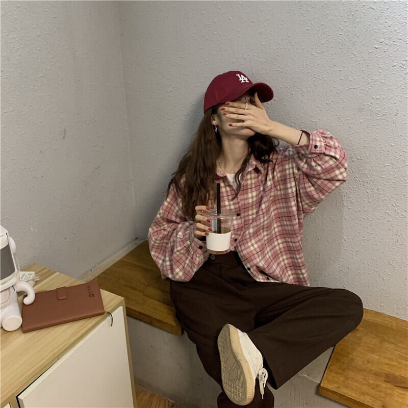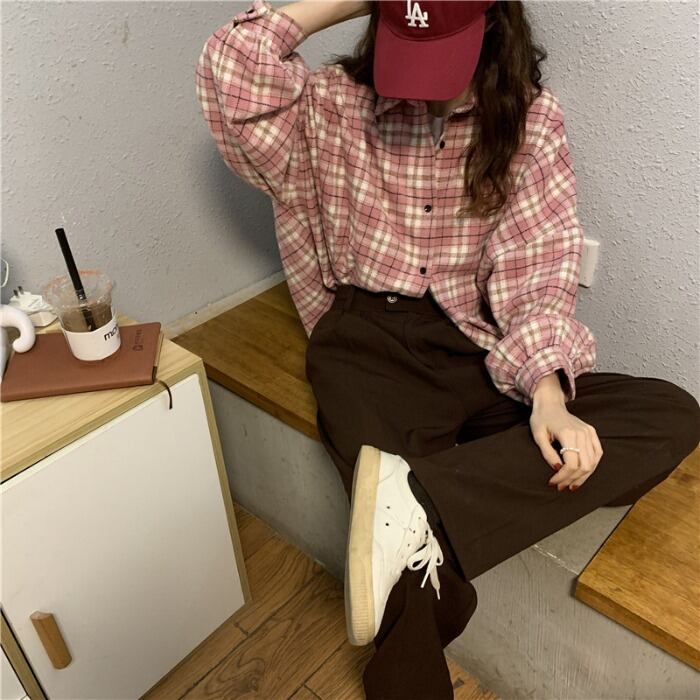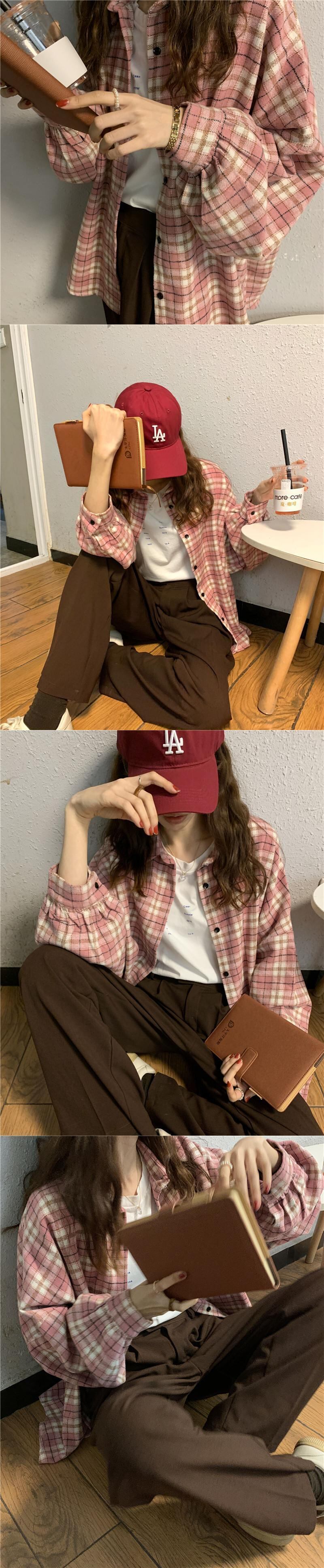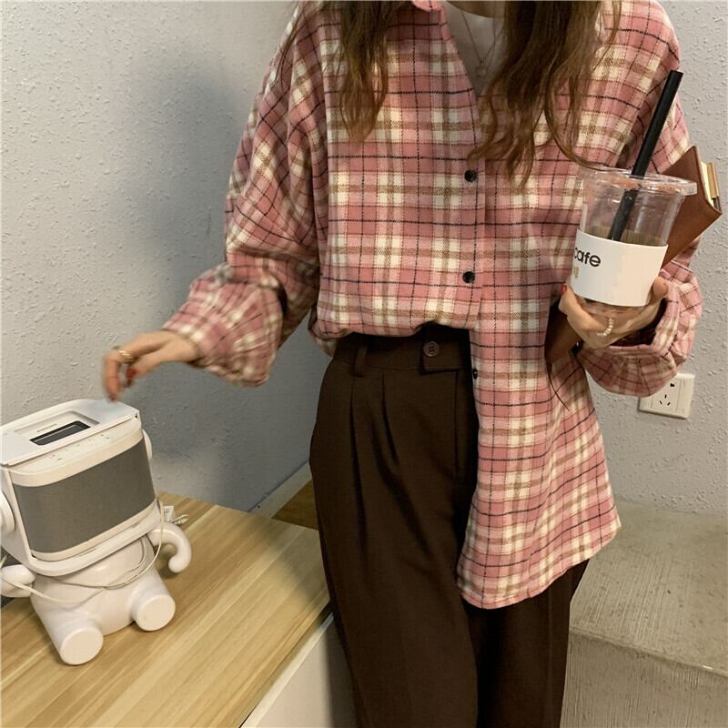 スタンダードスタイル格子柄シャツ レディースオータムウィンタージャケット トップス ロング レトロ 秋物 冬物 モンロー89191233951