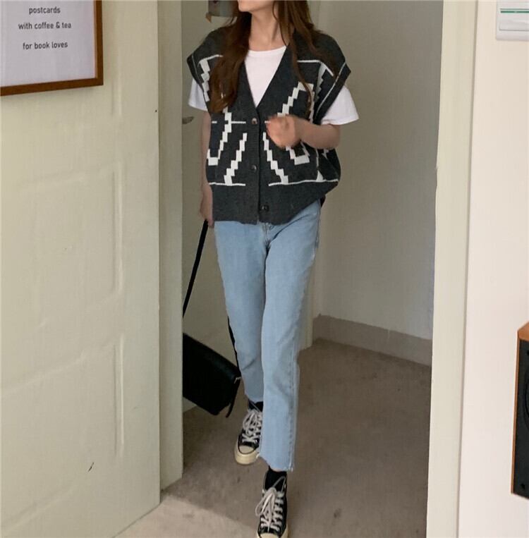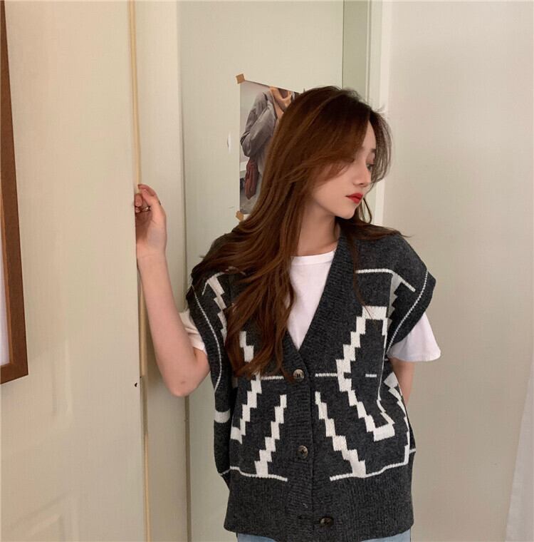 Vネックグレーニットジャケット オータムウィンタールーズセーター カーディガン 秋物 冬物 モンロー48644407977