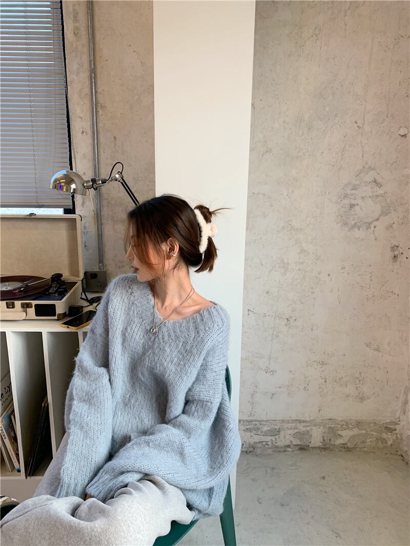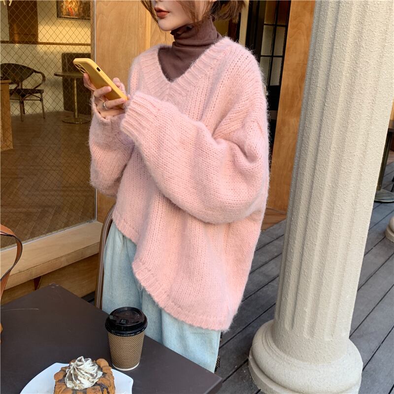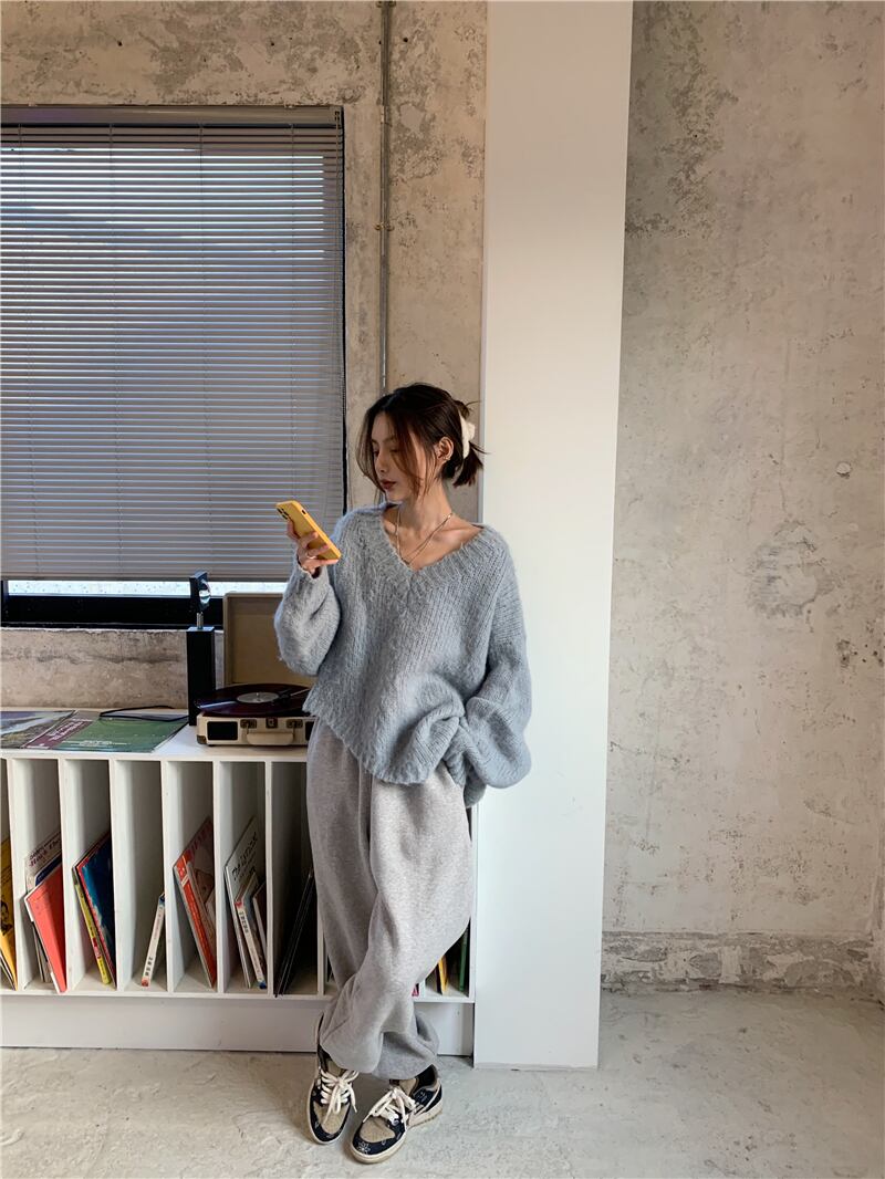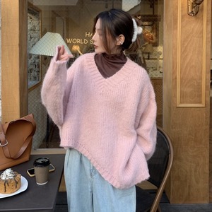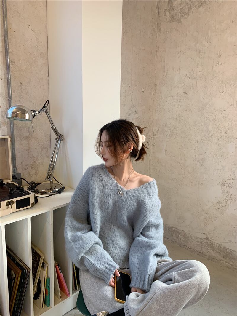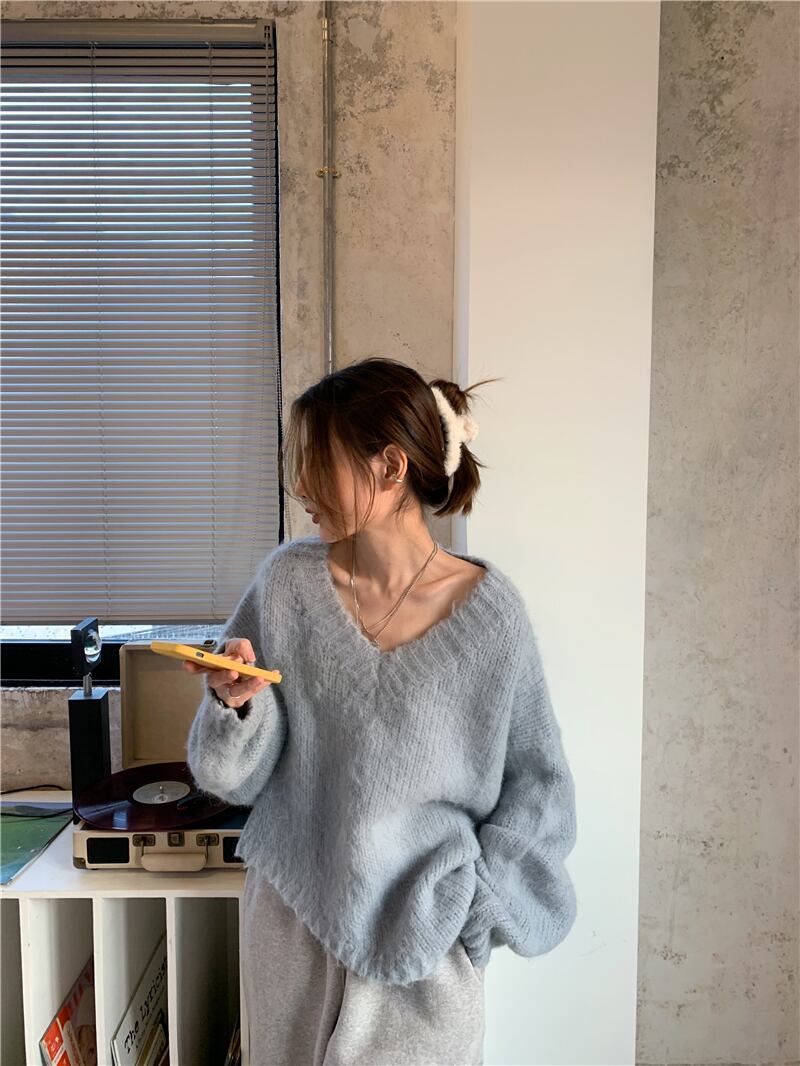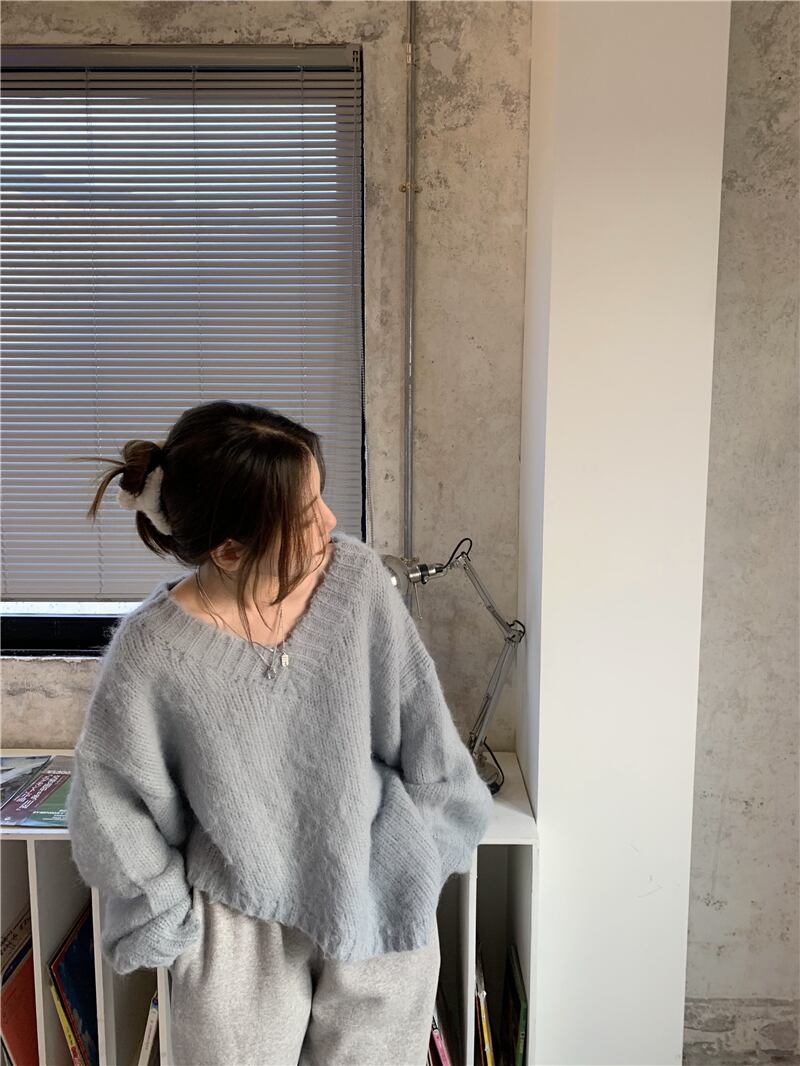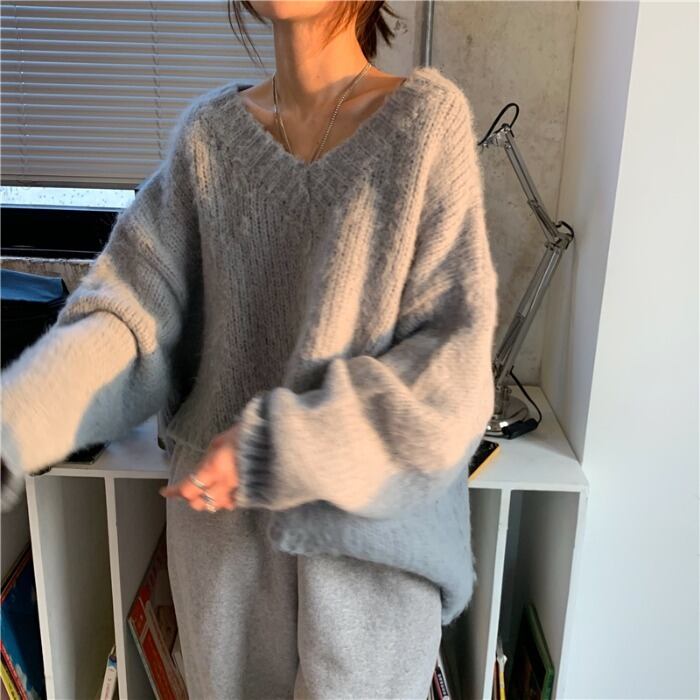 スタンダードVネックセーター レディースルーズオータムウィンタースタイルシャツ ニットトップス レトロ 秋物 冬物 モンロー11248046216