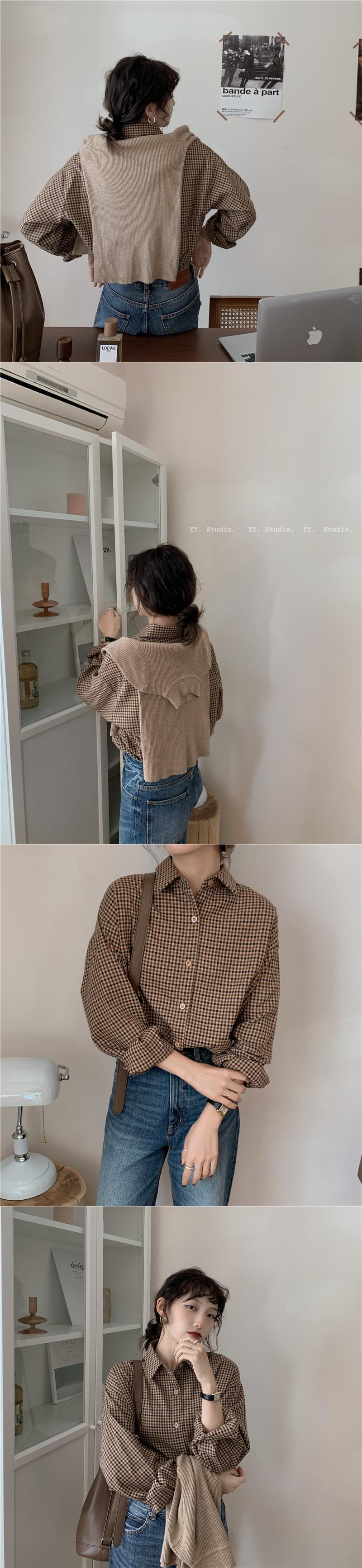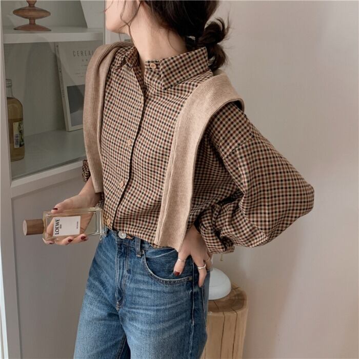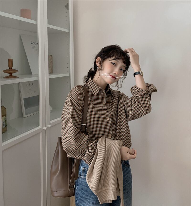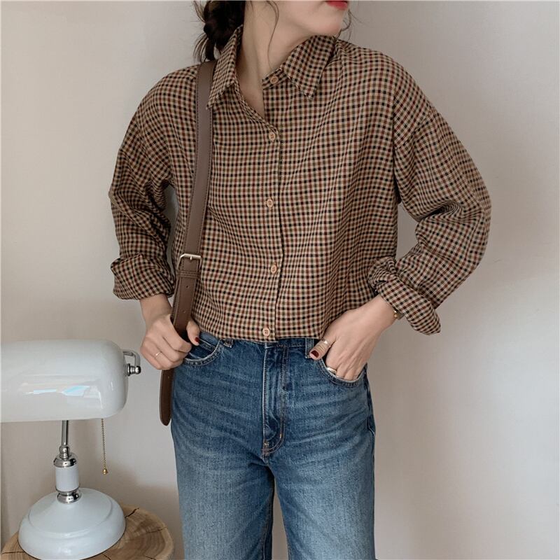 スタンダード格子柄シャツ オータムウィンタージャケット ロング レトロ 秋物 冬物 モンロー69881675586