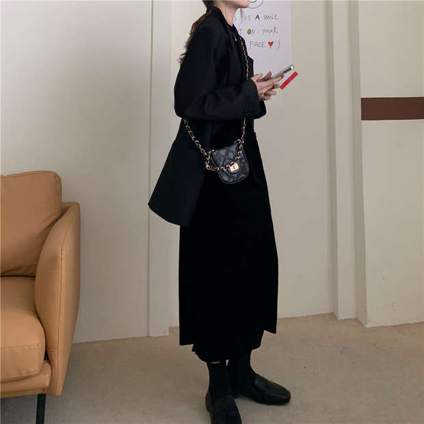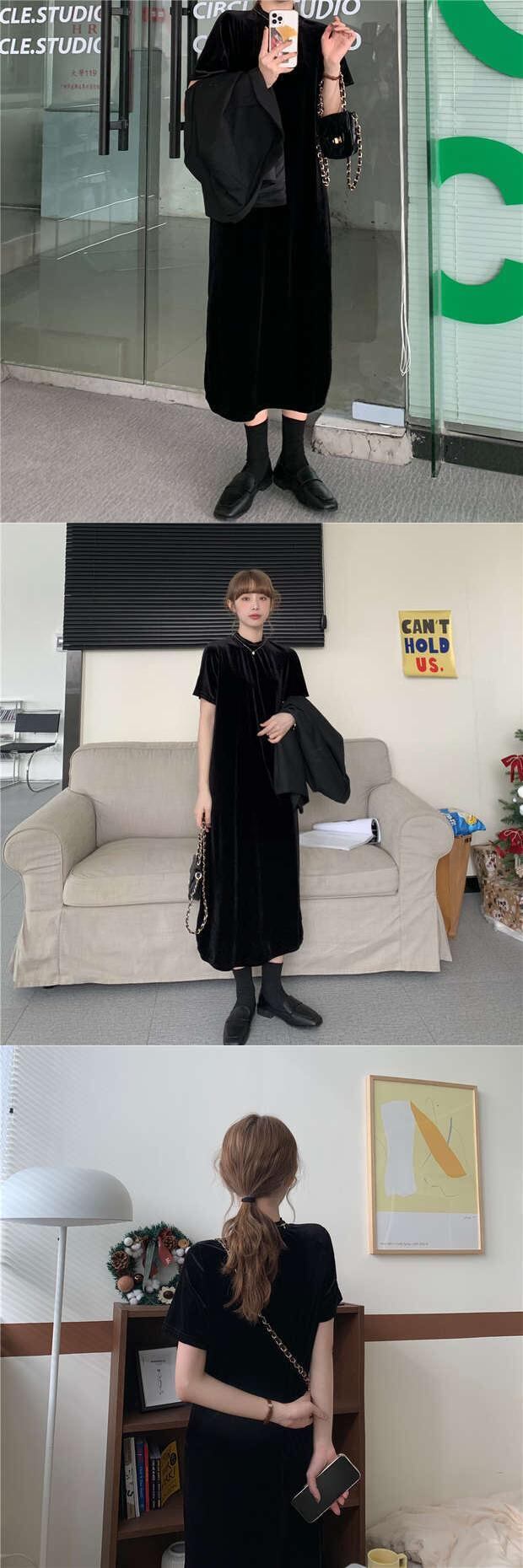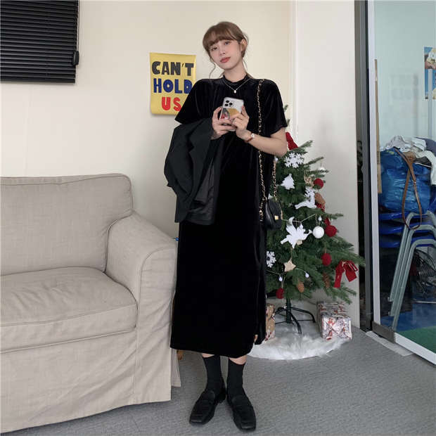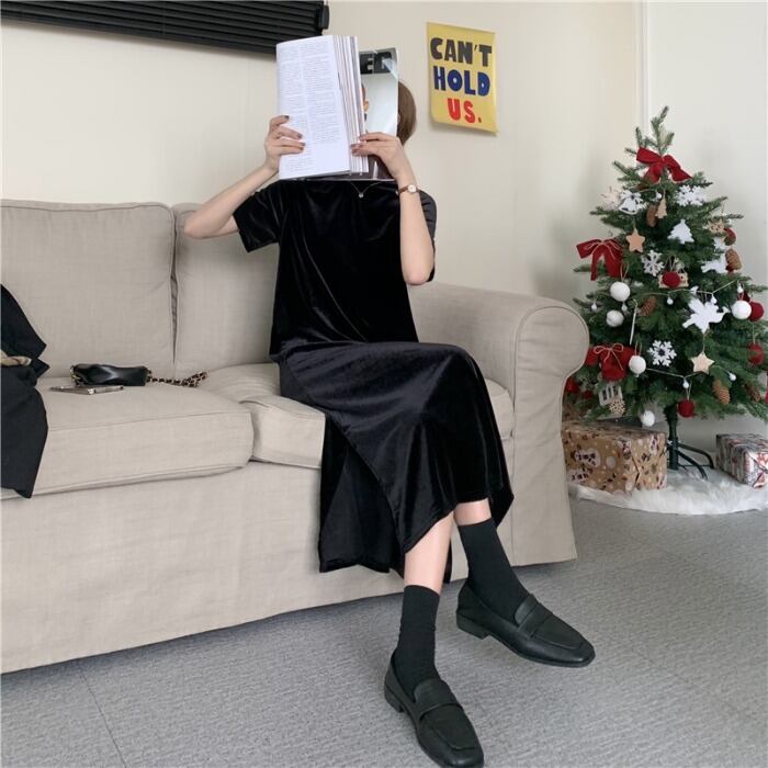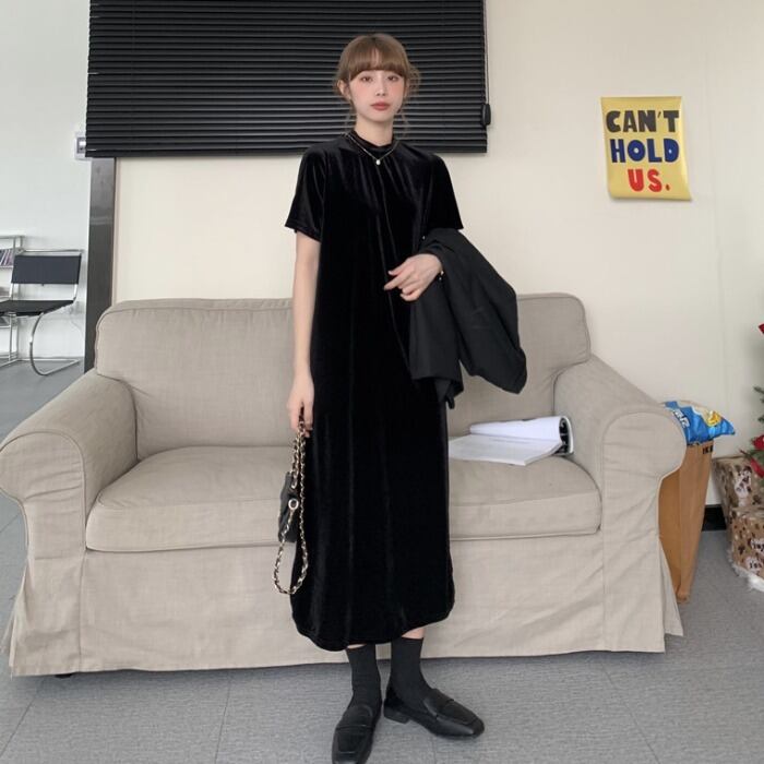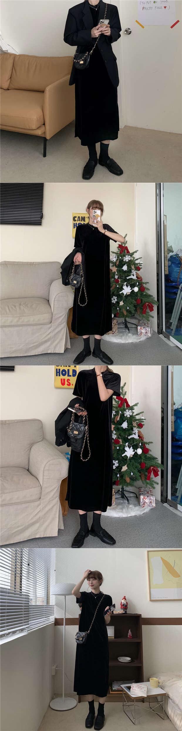 ベルベットドレス スカート オータムウィンタースタンダードブラックロング レトロ 秋物 冬物 モンロー38115284233
