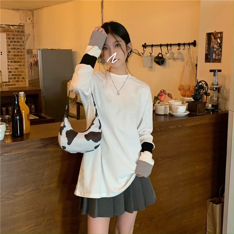 ホワイトTシャツ シャツ スタイルスプリングルーズトップス ロング 春物 モンロー9225224548
