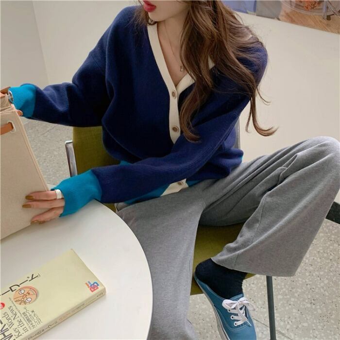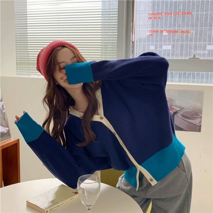 Vネックショートセーター ジャケット カーディガンスプリングスタンダードカラー レトロ 春物 モンロー62705416783