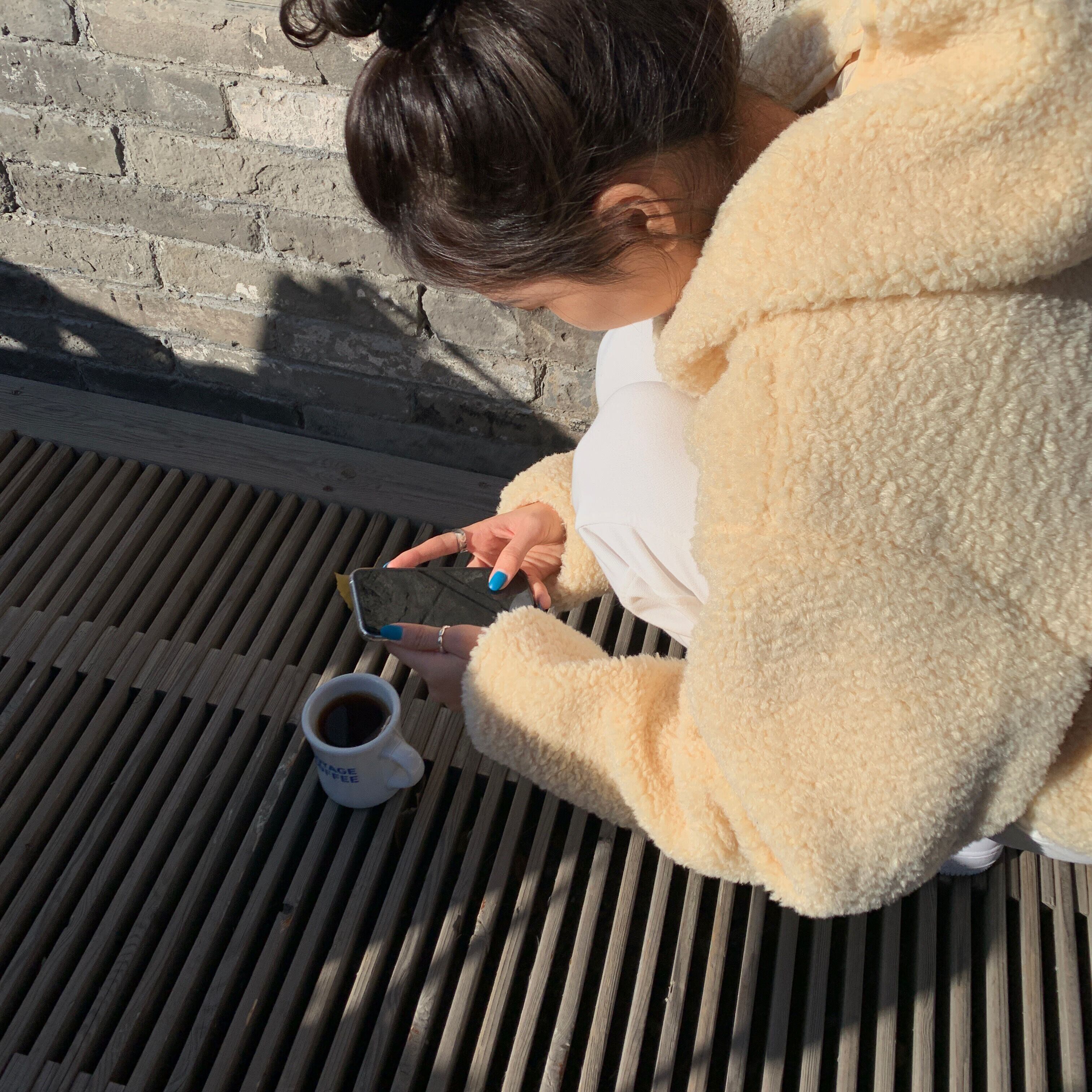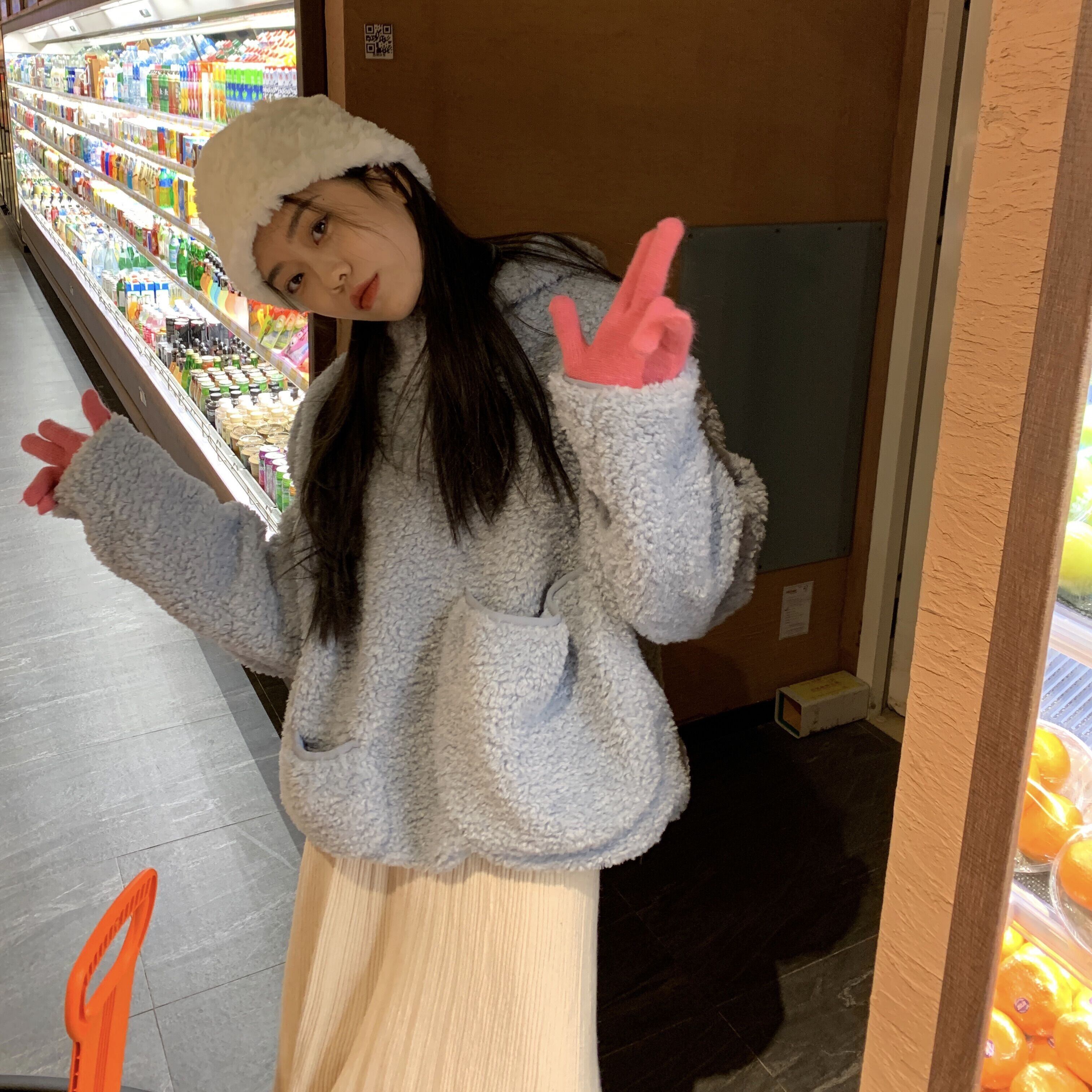 ウールフードブルーセーター スプリングベルベットルーズトップス コート 春物 モンロー39244605007
