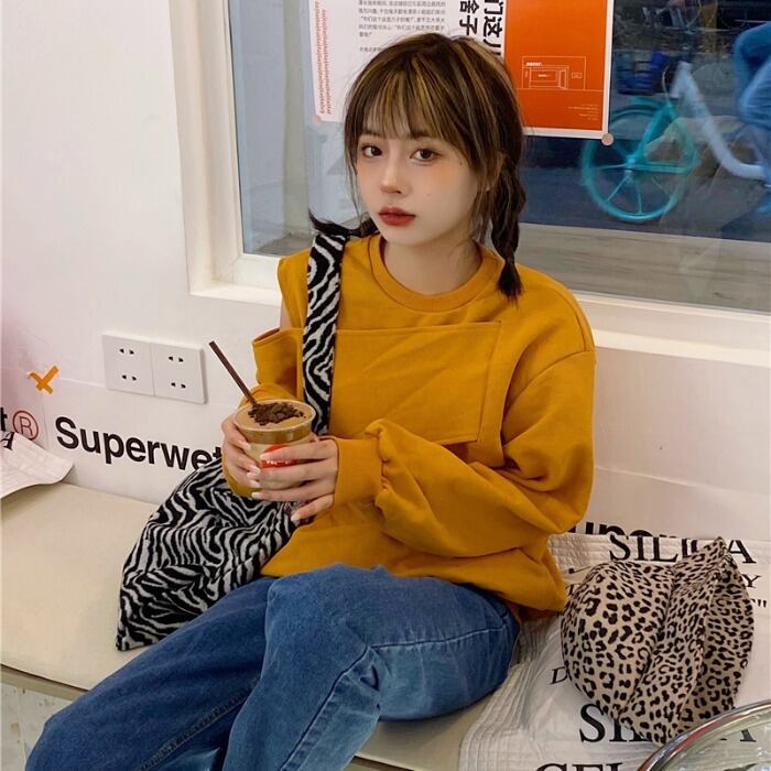 ルーズイエローセーター オータムウィンタートップス コート 秋物 冬物 オフショルダー モンロー99170930829